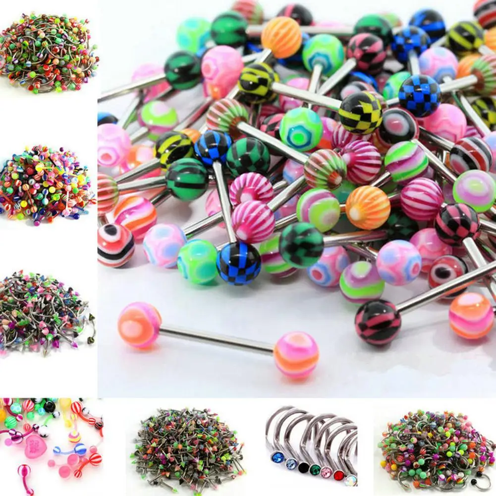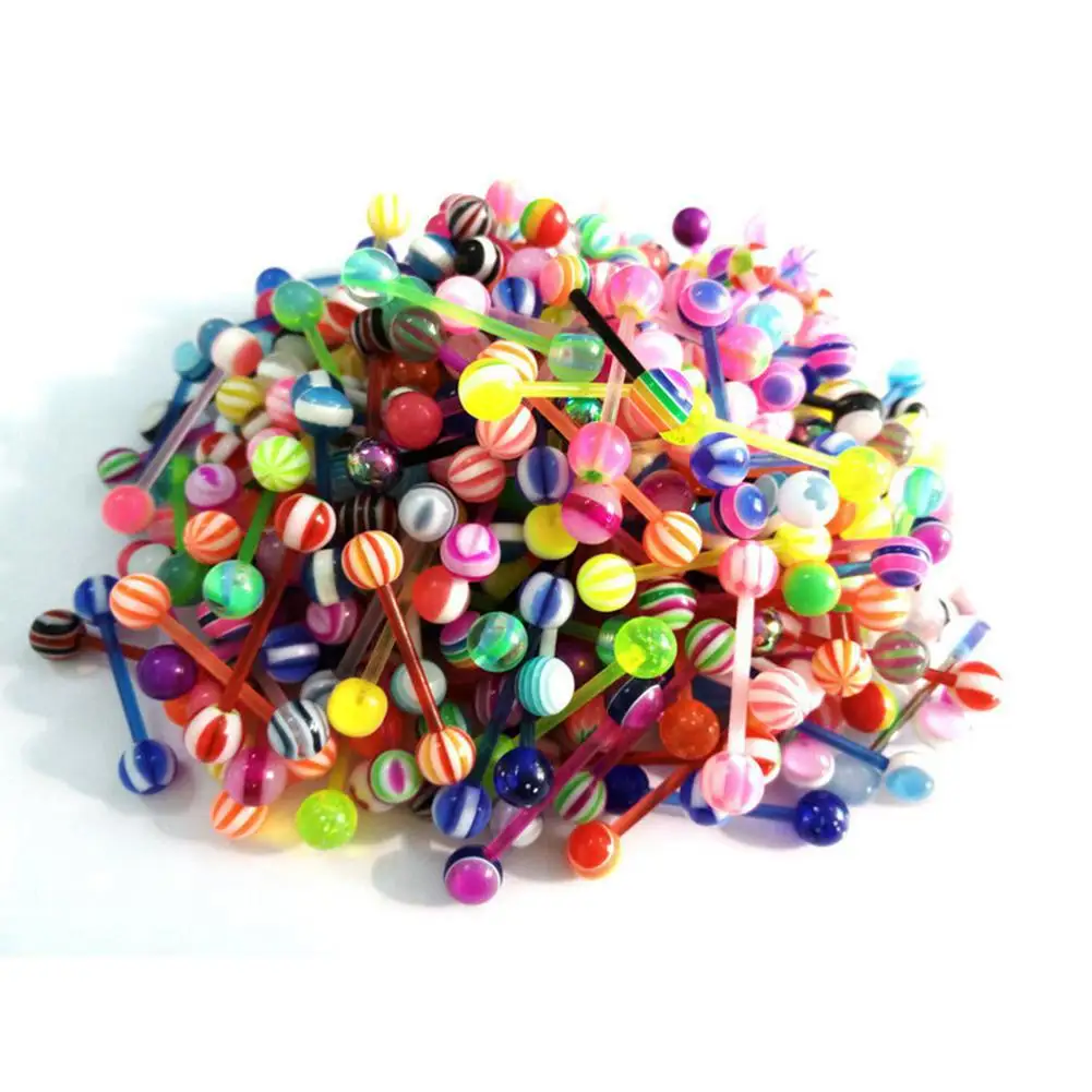 10/20PCS Luminous Acrylic Tongue Ring Women Ear Septum Nipple Piercing Bar Bell Navel Lip Eyebrow Nose Body Jewel | Украшения и