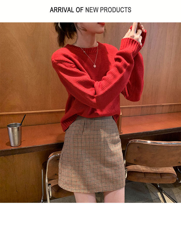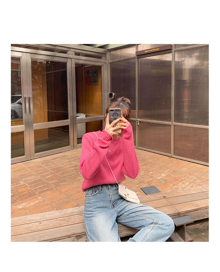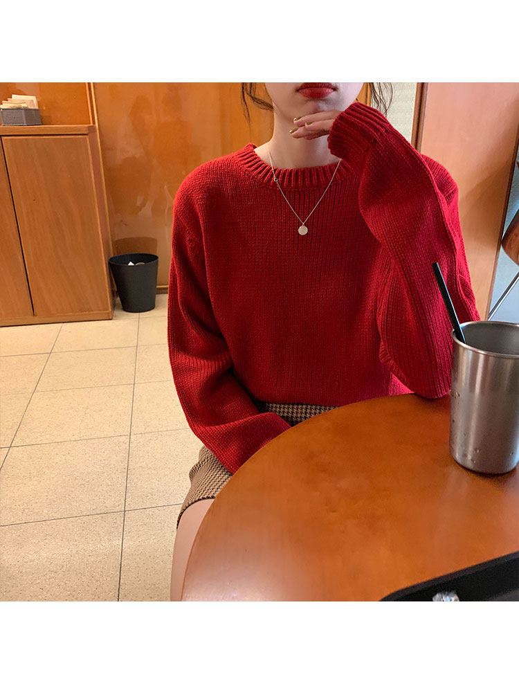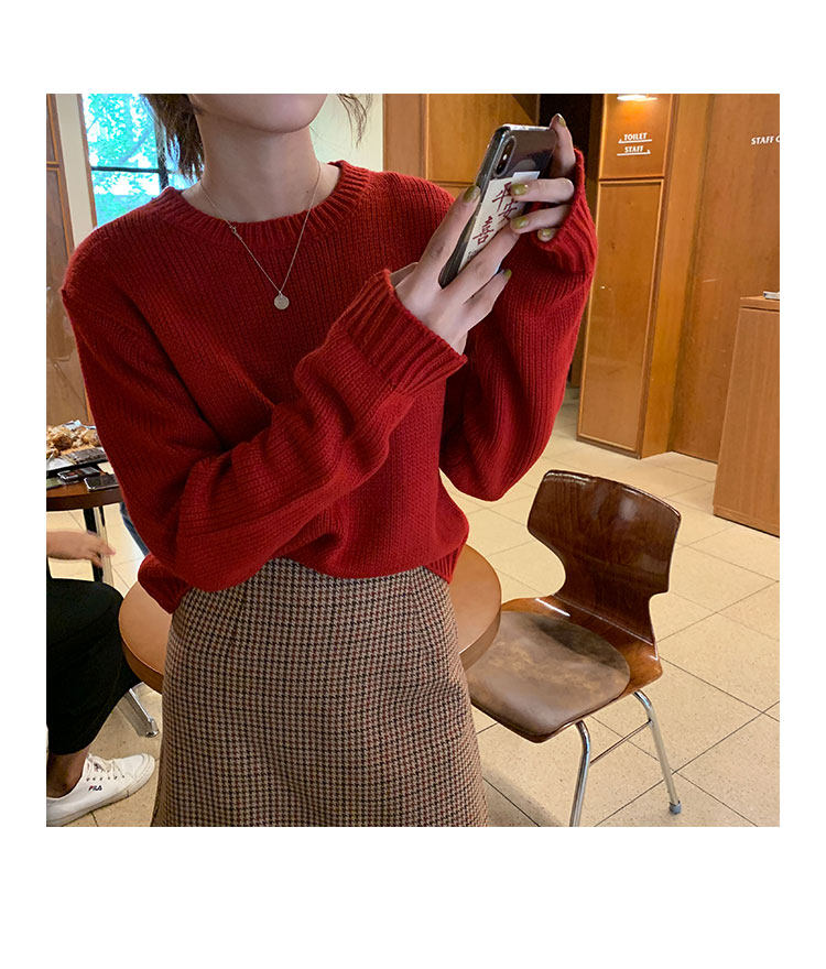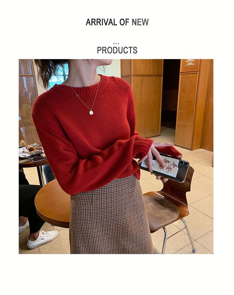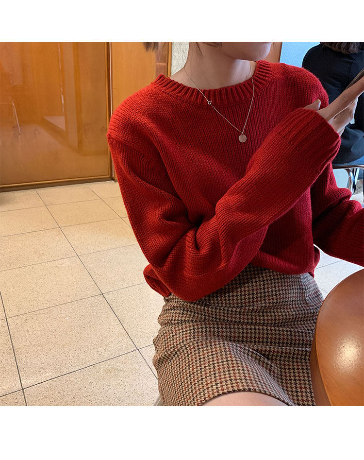 5 цветов, осень 2019, корейский стиль ins, сплошной цвет, базовый вязаный короткий свитер с круглым вырезом, женские свитера и пуловеры