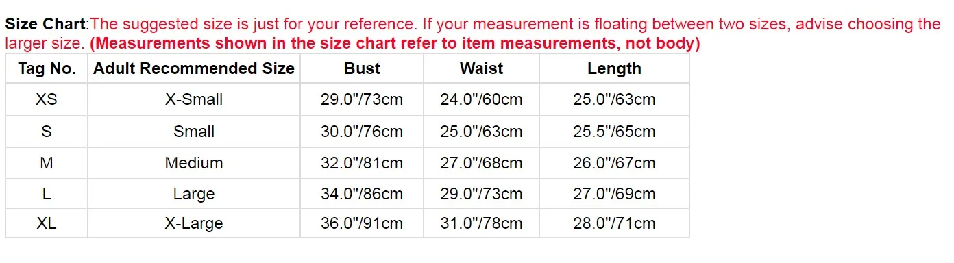 | Размер на бирке. | Взрослый рекомендуемый размер | Обхват груди | Обхват талии | Длина |