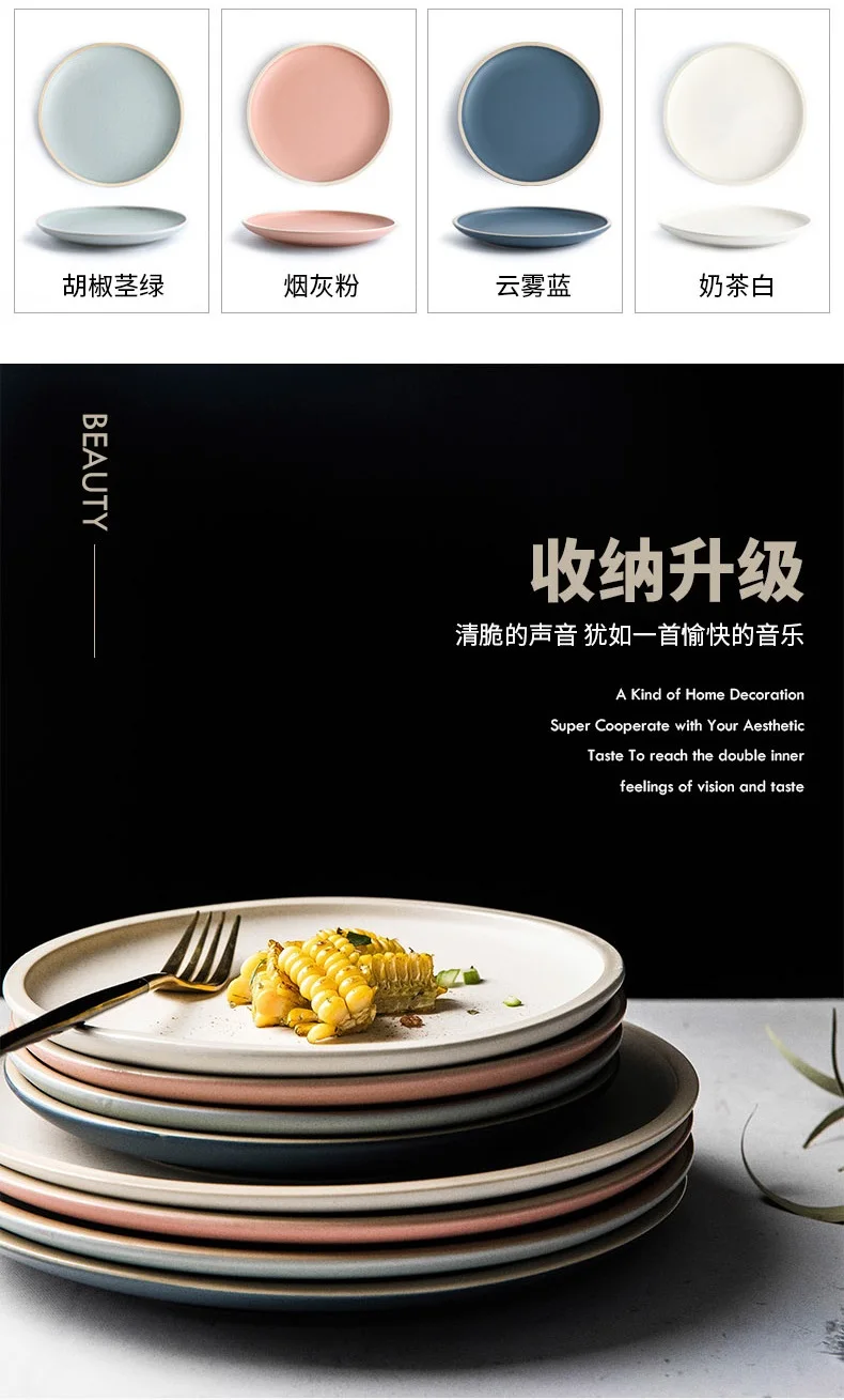 Керамика-блюдо-глазурованный чистый цвет-блюдо для стейка-блюдо для домашнего творчества-посуда для завтрака