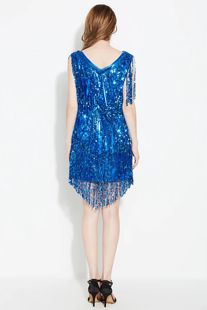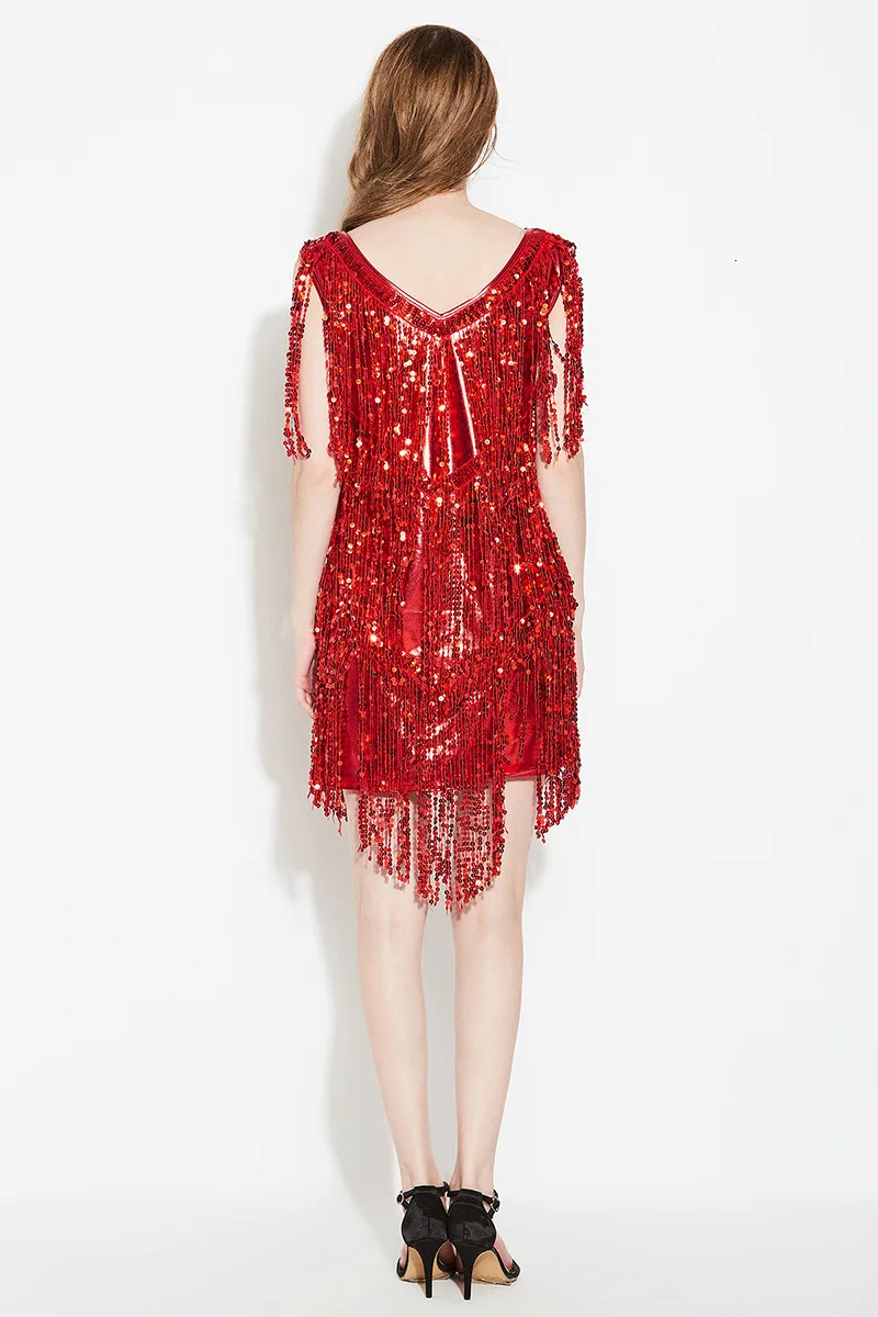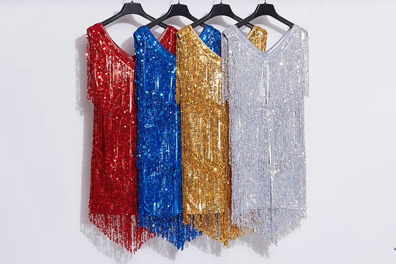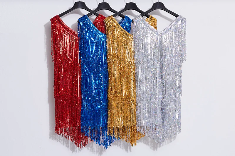 Блестящие золотые блестки лоскутное платье с бахромой модные пикантные