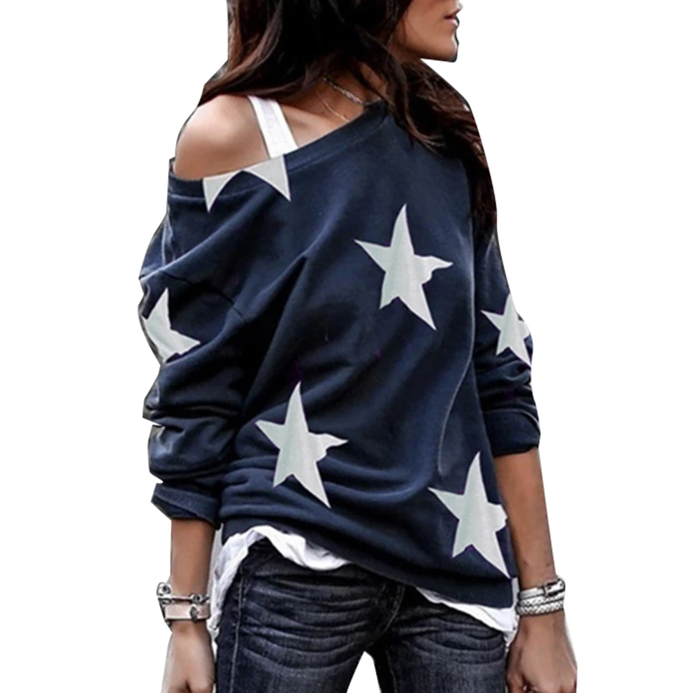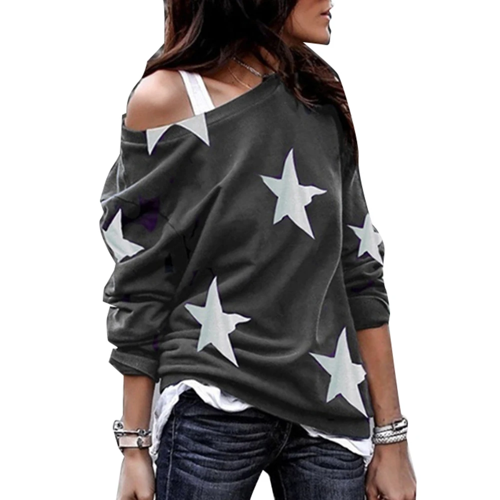 Женская Повседневная Свободная блузка с длинным рукавом и принтом звезды