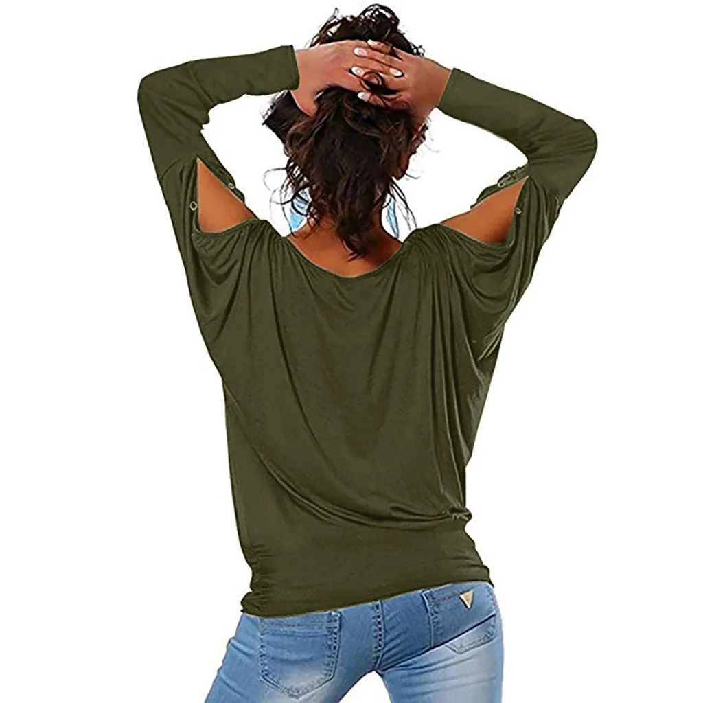Модные женские футболки с длинным рукавом и рукавами «летучая мышь», топы с вырезом лодочкой и открытыми плечами