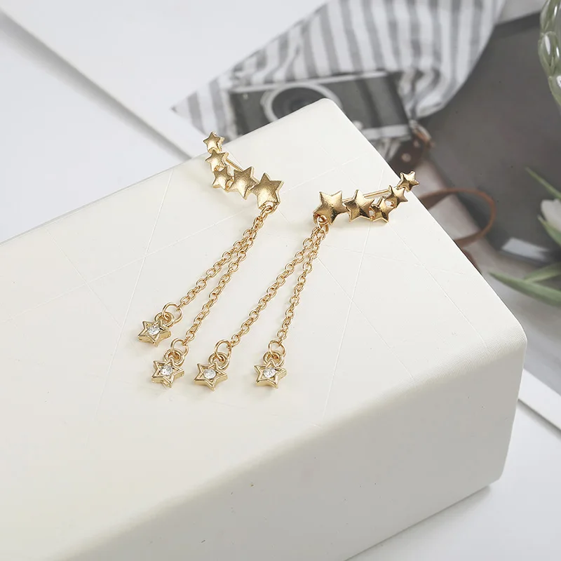 Стильные блестящие геометрические длинные золотые звезды со стразами, висячие серьги с кисточками, ювелирные изделия, подарок Brincos