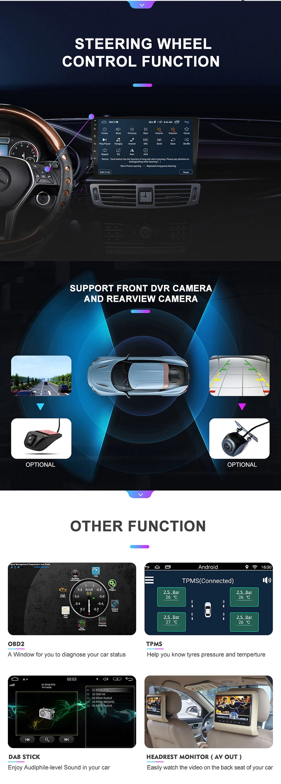 Поддержка внешней камеры DVR, OBD2 и DAB приемник