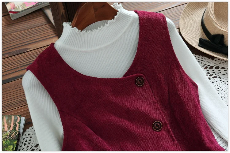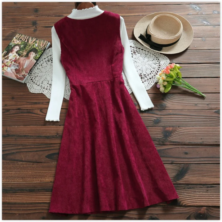 Бургундское однотонное винтажное платье новое осенне-зимнее женское вельветовое платье без рукавов на пуговицах Mori Girl стильный сарафан DC722 <