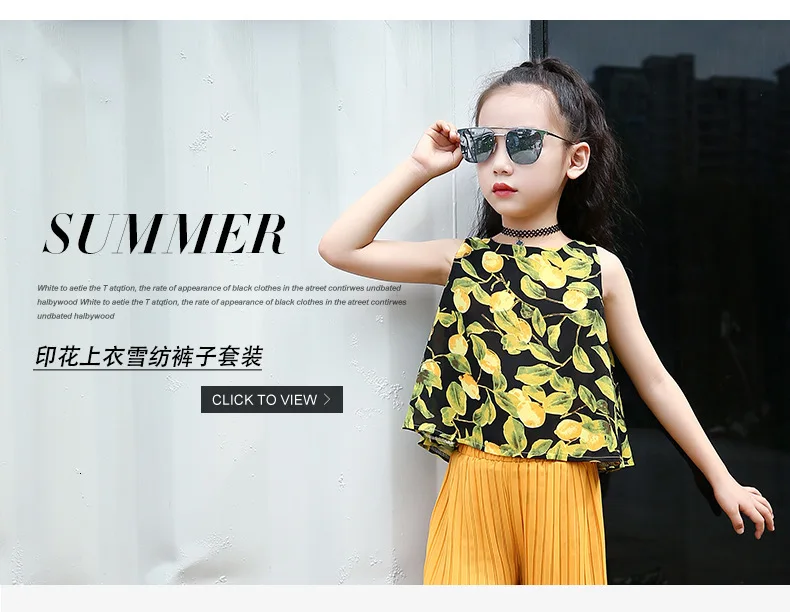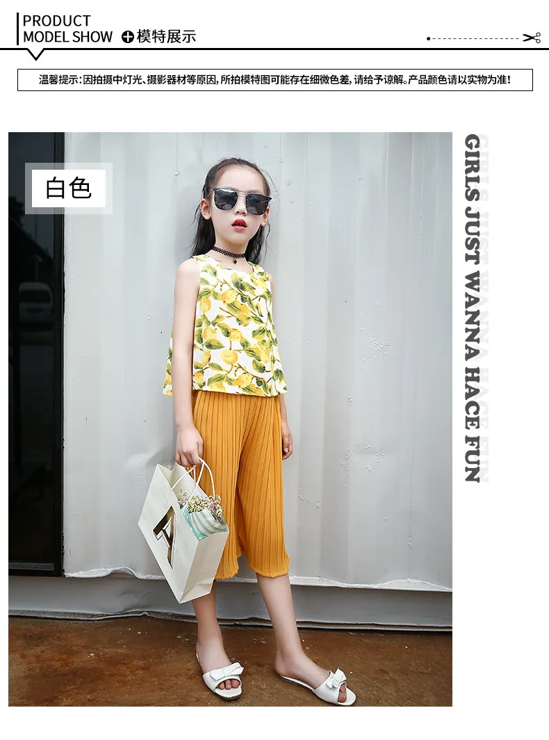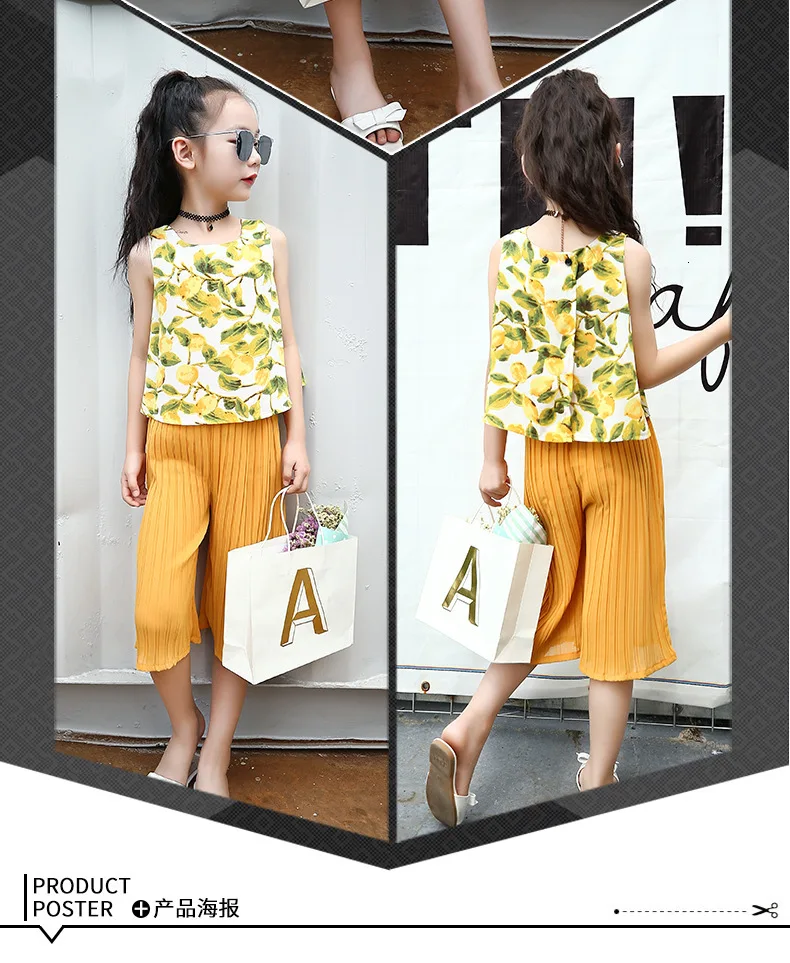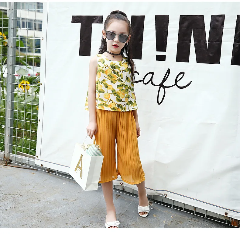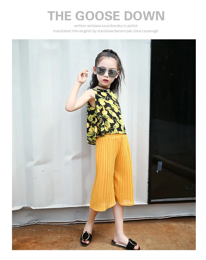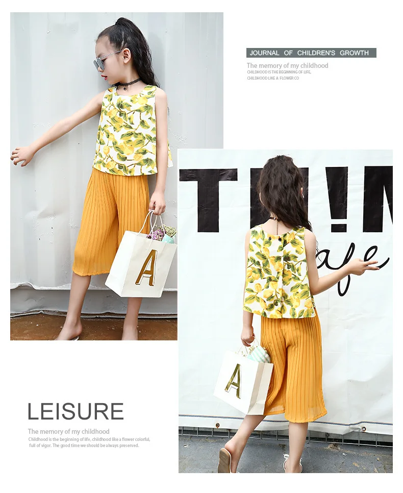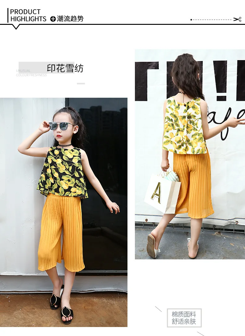 Модный шифоновый комплект для девочек летняя жилетка без рукавов с лимонами Топ
