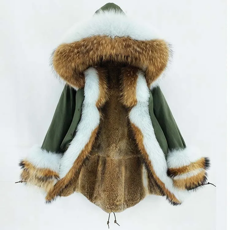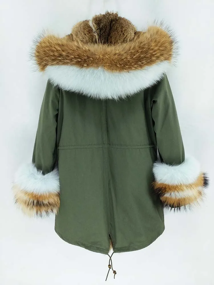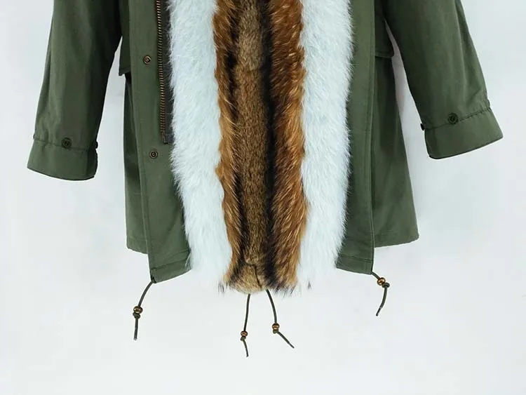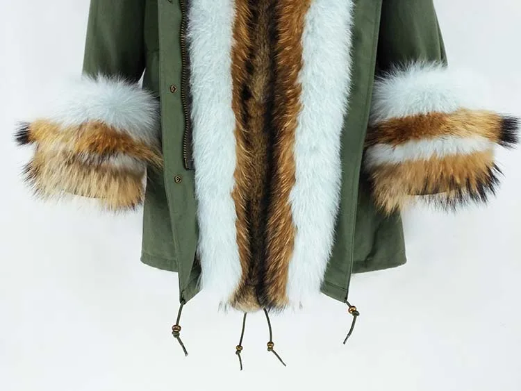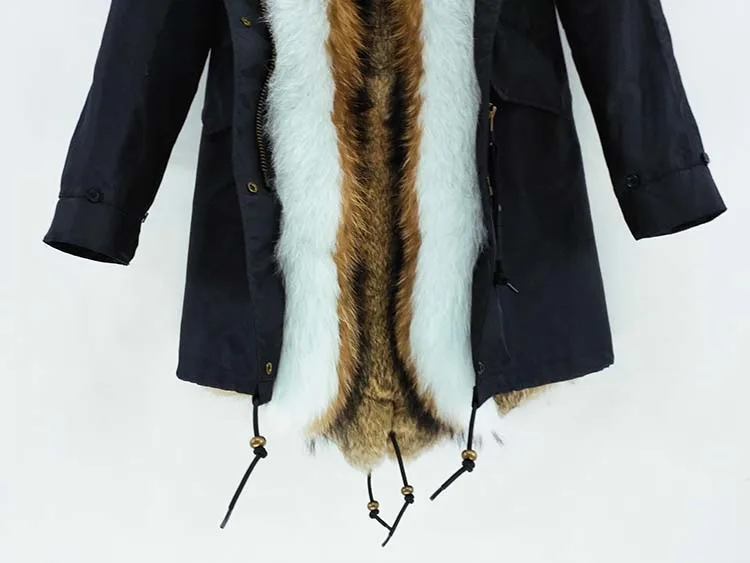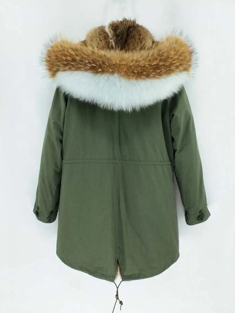 Хлопковое пальто + мех енота/воротник из лисьего меха + подкладка из кроличьего меха