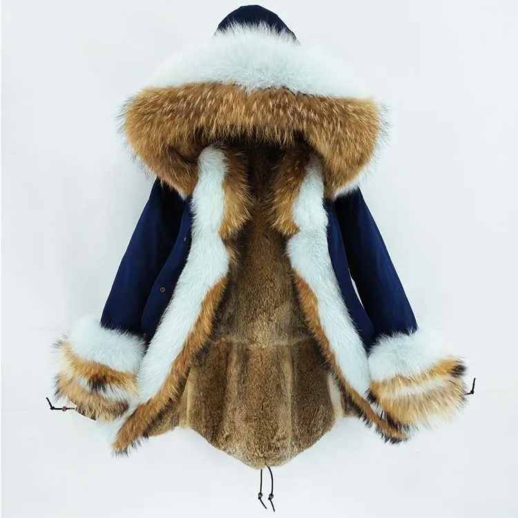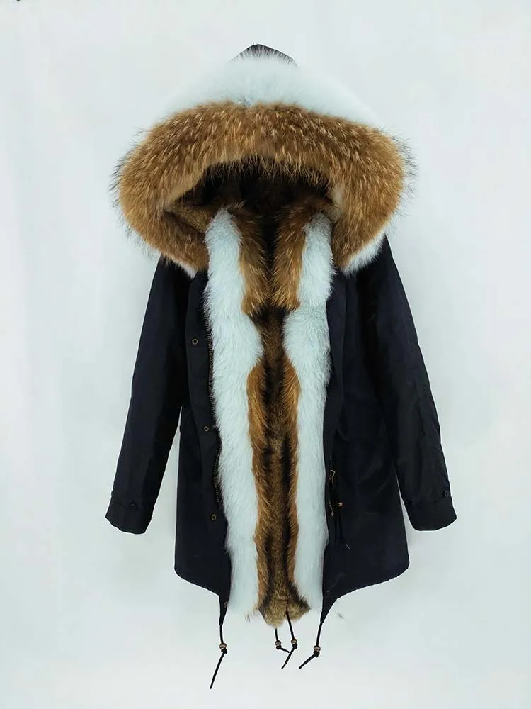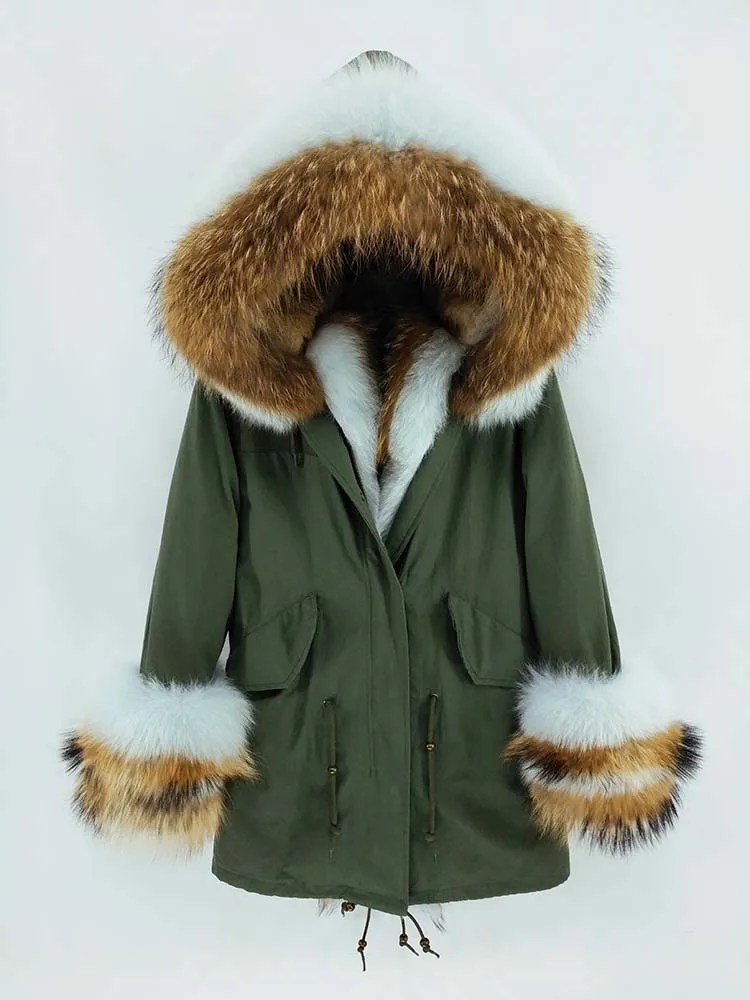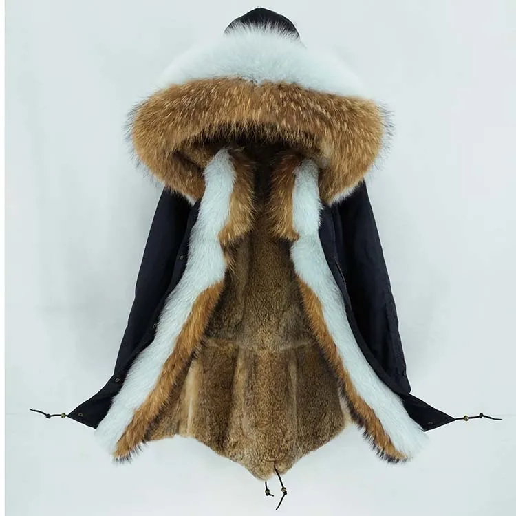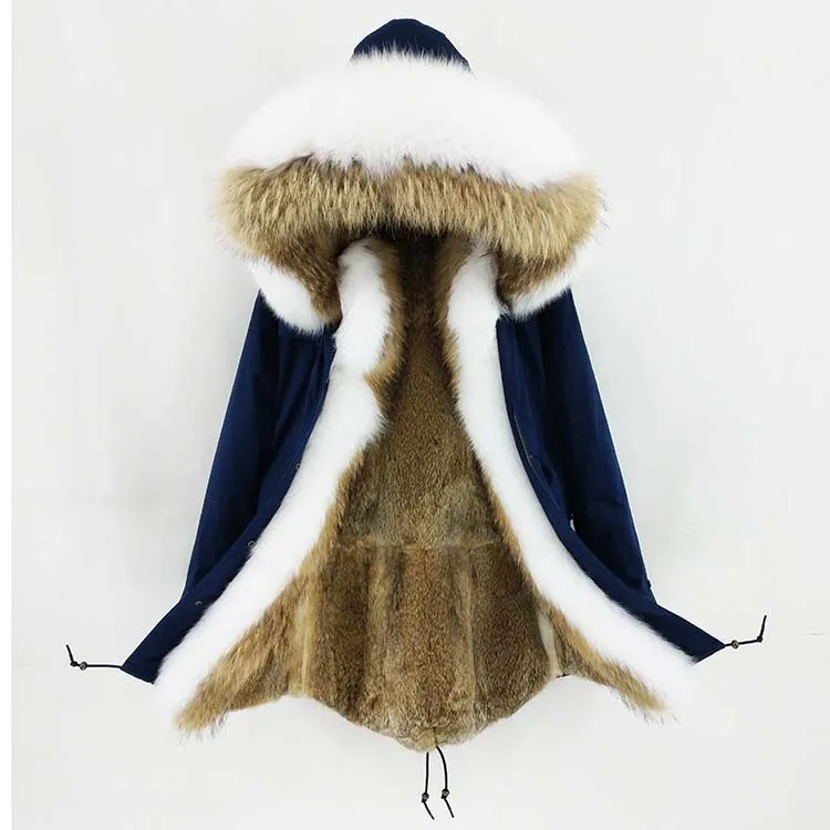 Хлопковое пальто + мех енота/воротник из лисьего меха + подкладка из кроличьего меха
