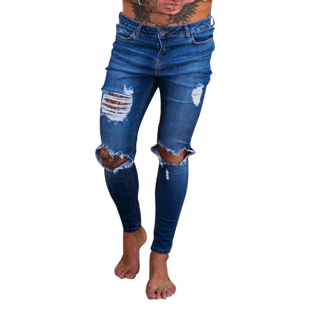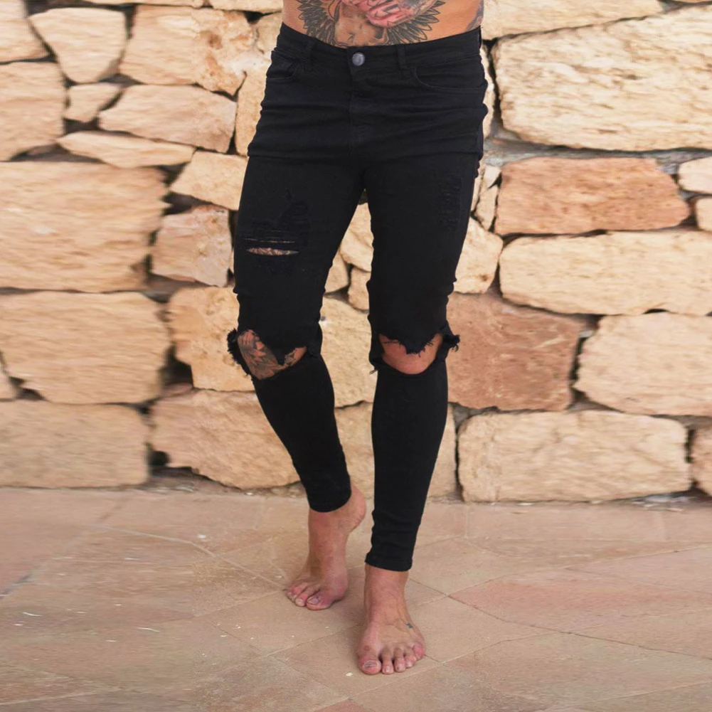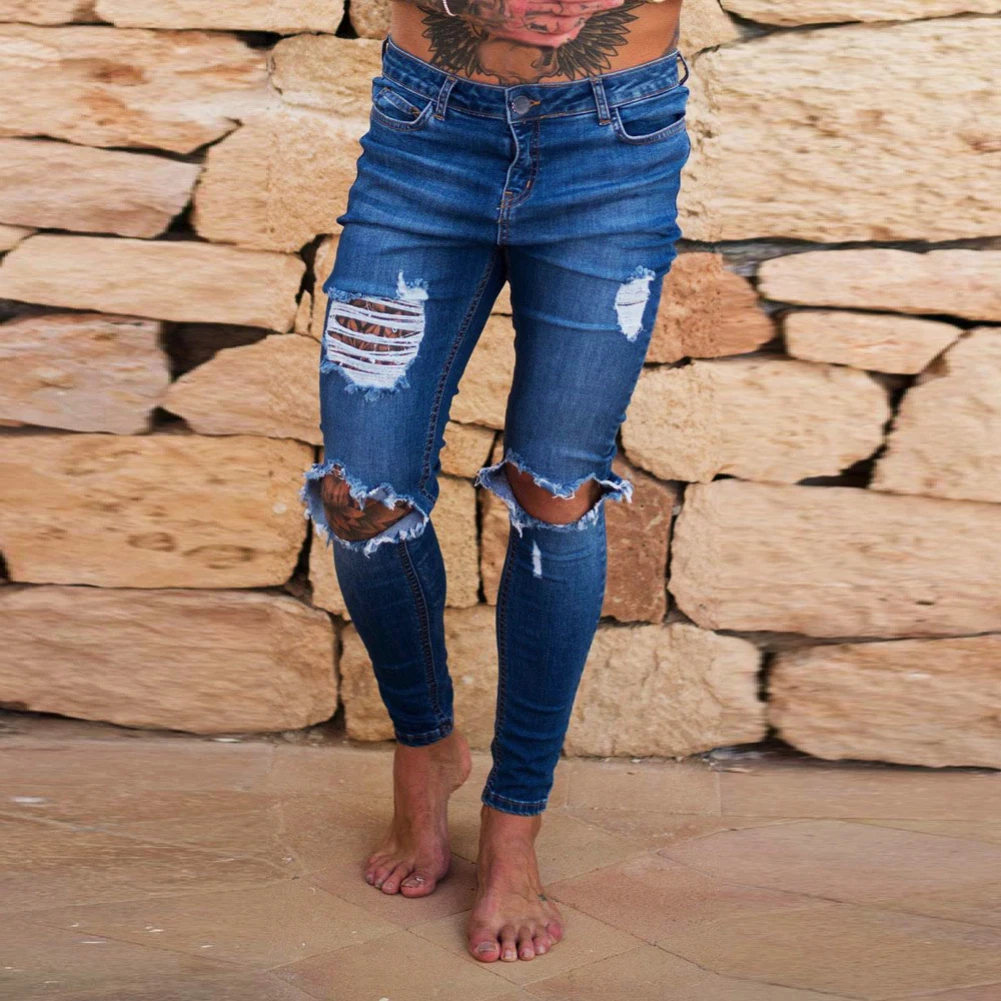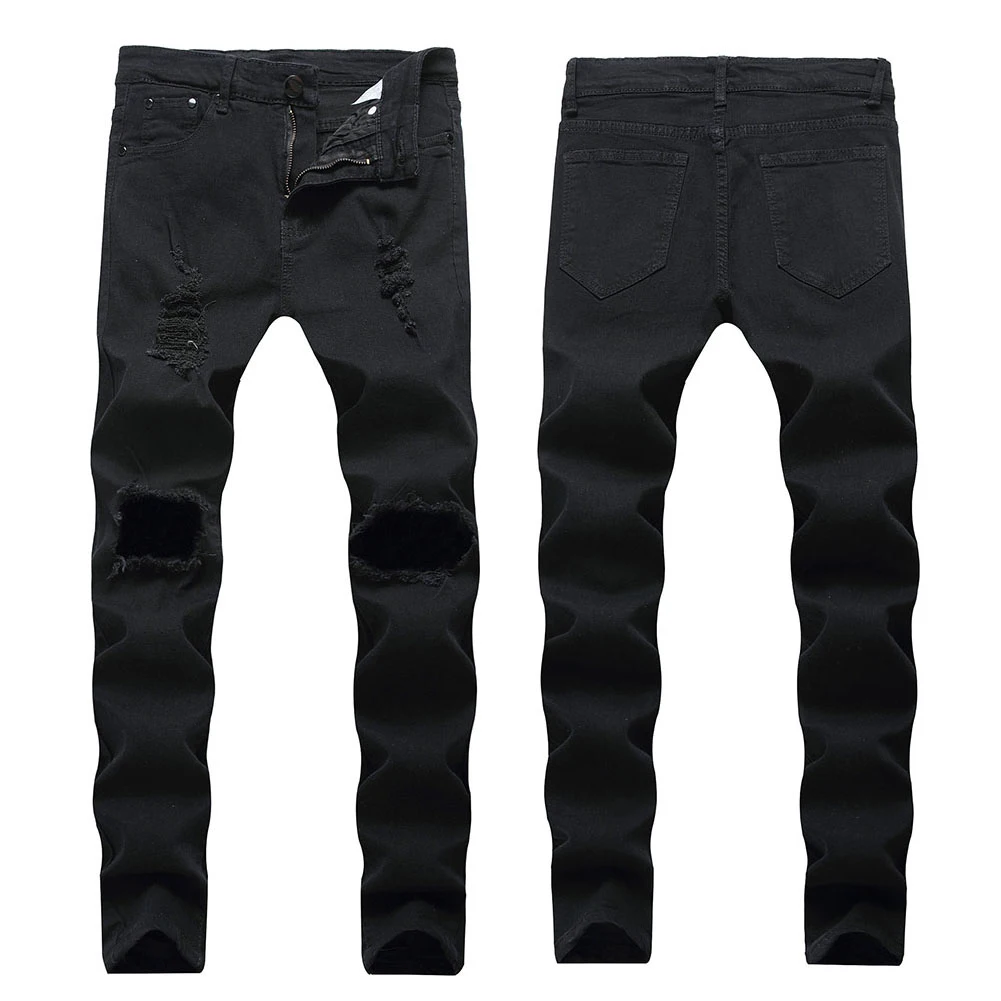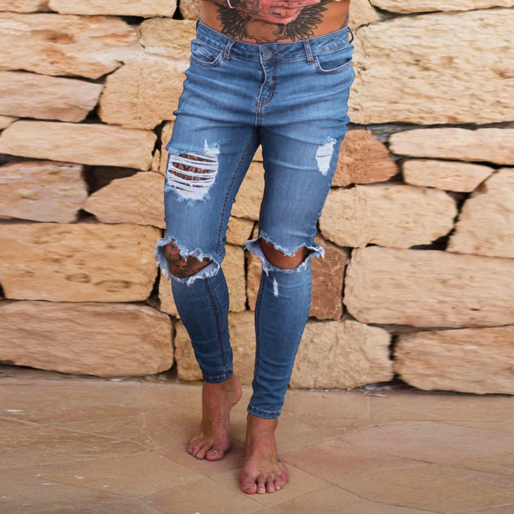 Модные мужские рваные джинсы облегающий с заниженной талией джинсовые длинные брюки облегающие брюки