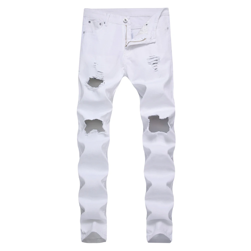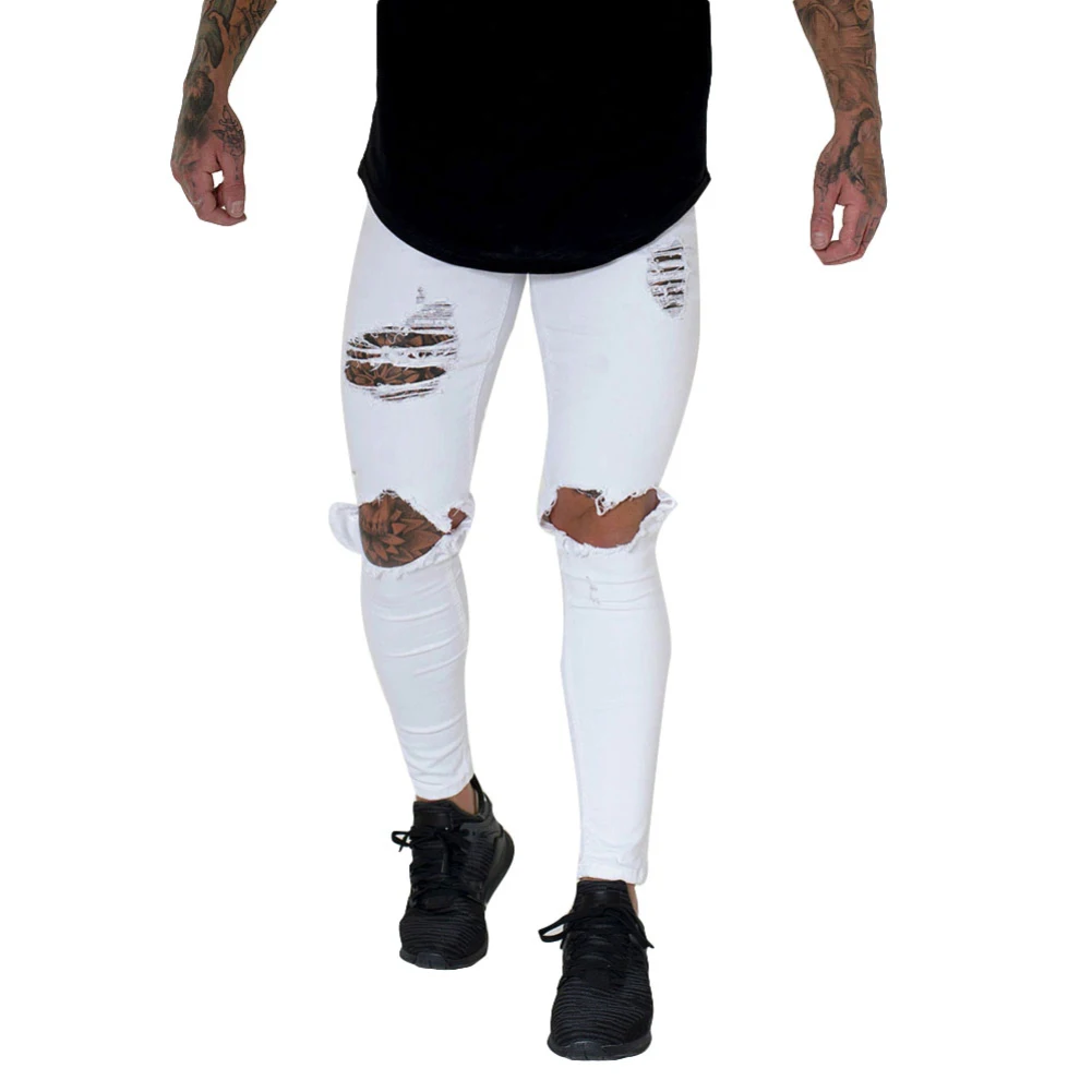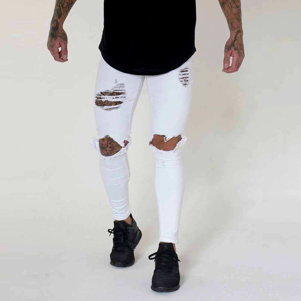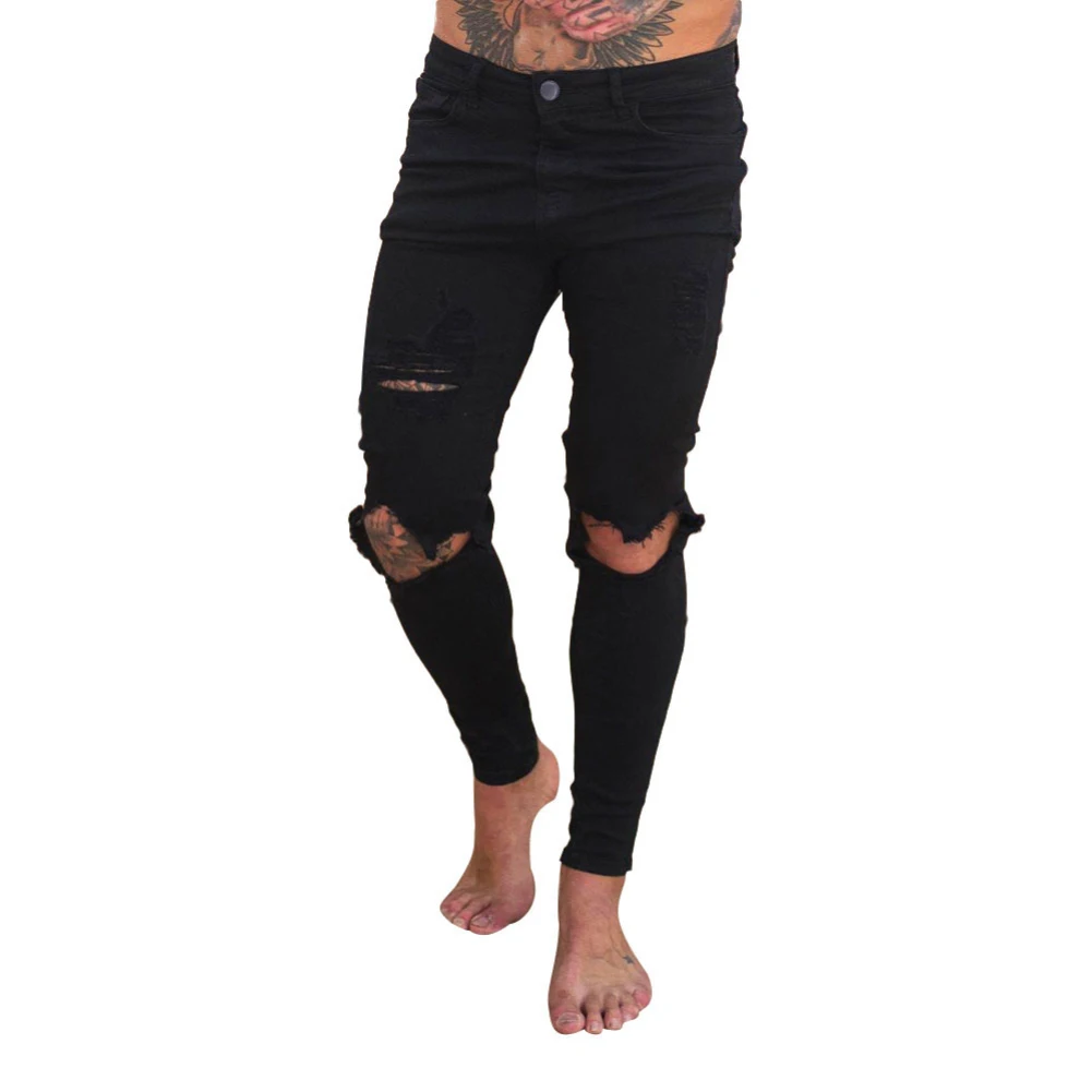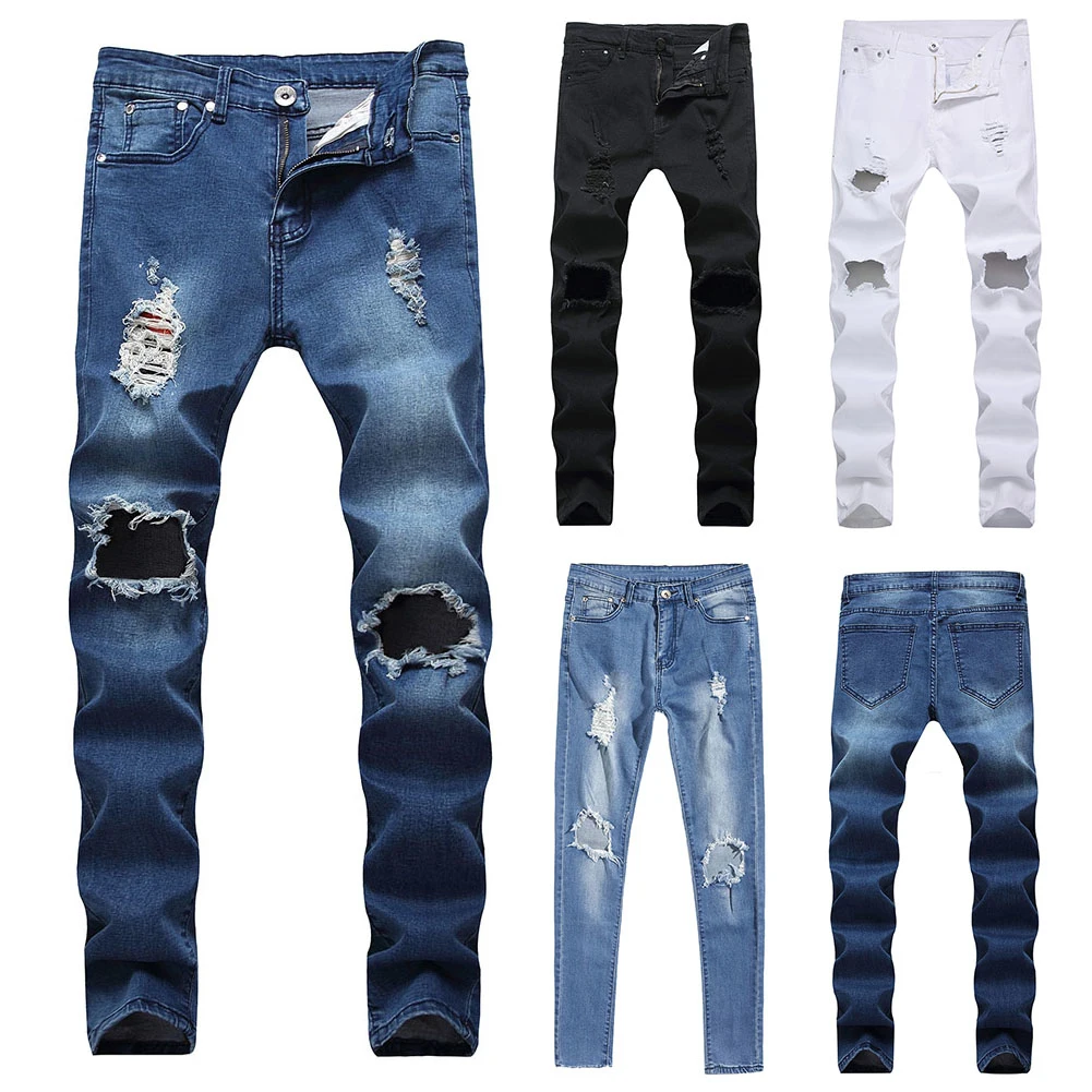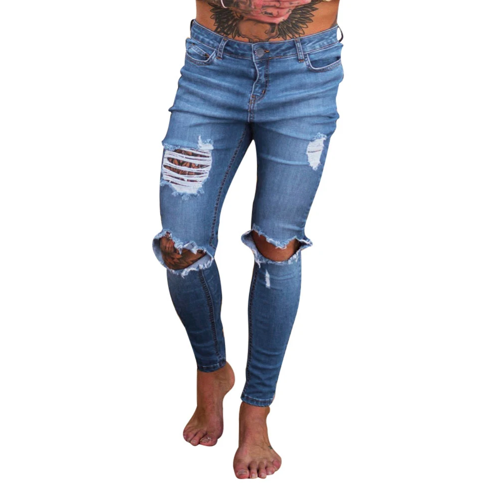 Модные мужские рваные джинсы облегающий с заниженной талией джинсовые длинные брюки облегающие брюки