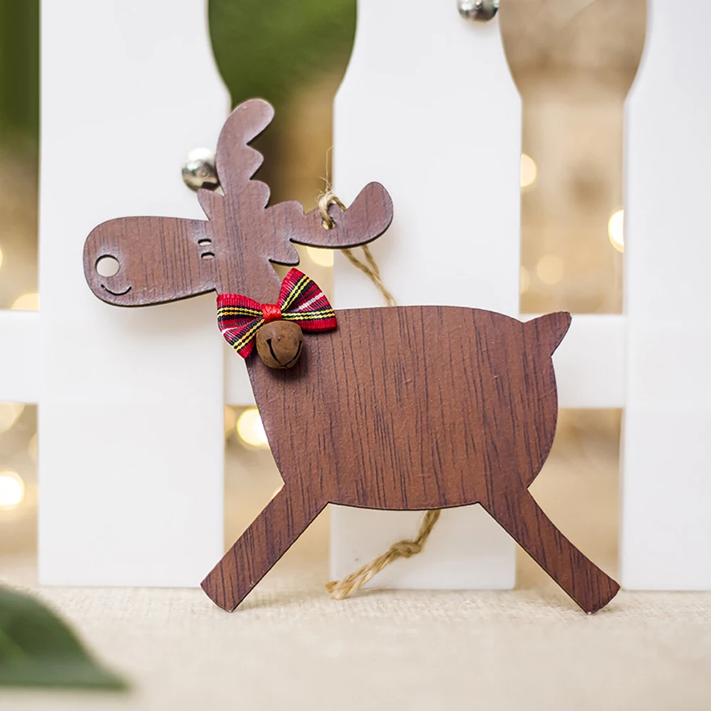 Прекрасный Бант колокольчик лося деревянный кулон Рождественская вечеринка Декор висячие орнамент
