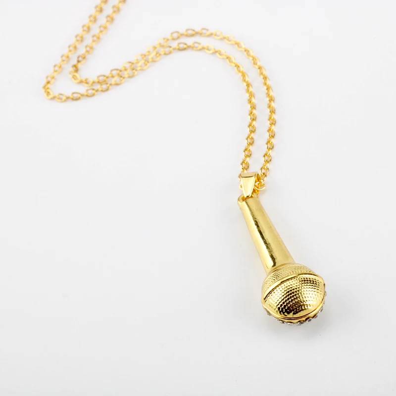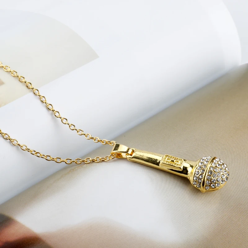 Хрустальная цепочка, ожерелье, рэпер, кулон «микрофон», для мужчин и женщин, золотые стразы, ожерелье, шаровары, хип-хоп ювелирные изделия, аксессуары