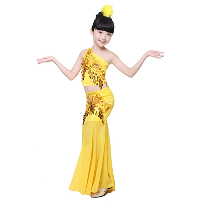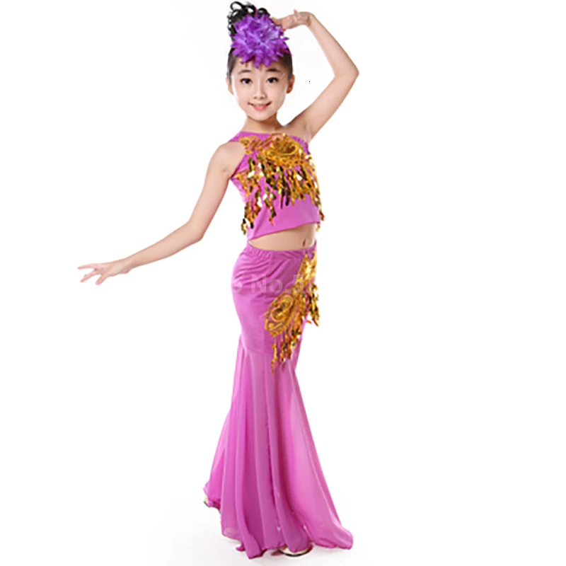 Костюм для танца живота, детское платье с хвостом для девочек и взрослых, платье для женщин, с блестками, для выступлений, с открытыми плечами, в восточном стиле