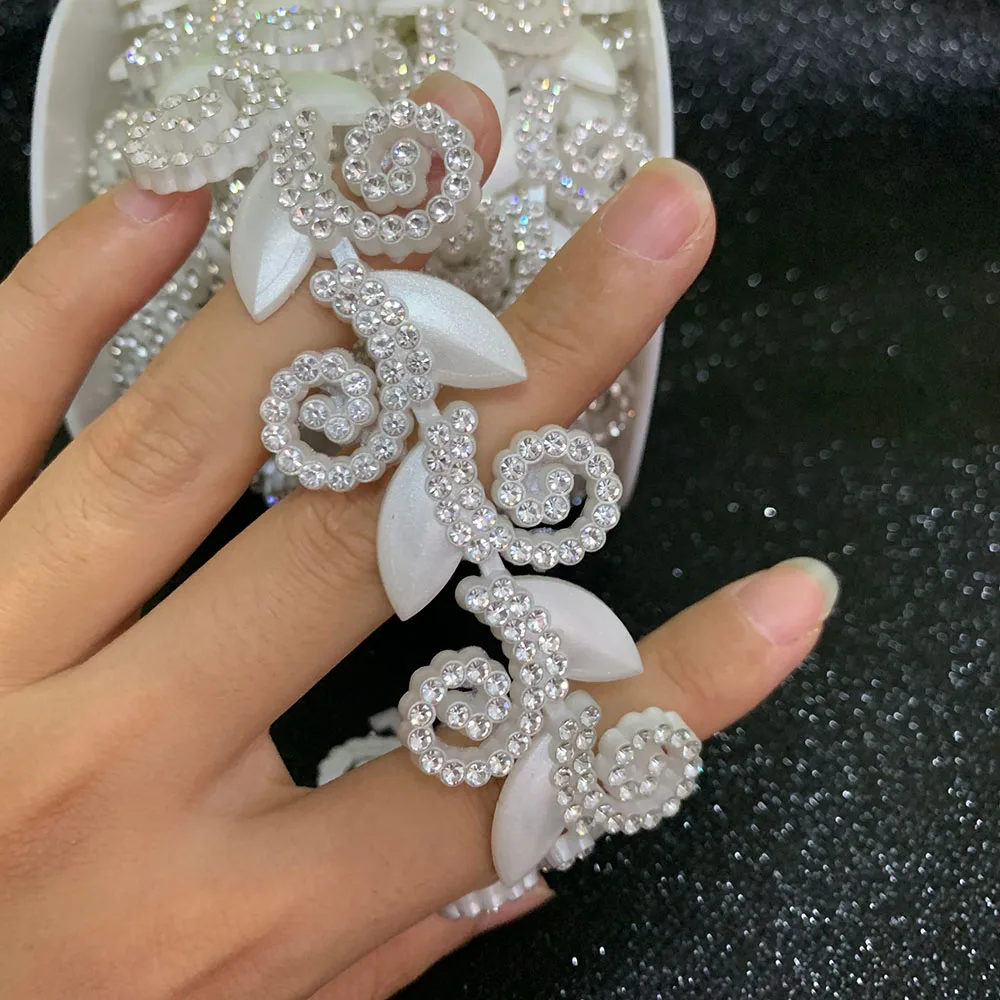 Стразы в форме цветка Кубок цепи Материал: основа-пластик, стразы-стекло, можно использовать клей для закрепления на ткани или пришивания на ткани Цветка 1 ширина составляет около 2 см, floewr 2 ширина составляет около 3,5 см Можно использовать на ткани, обуви, сумках