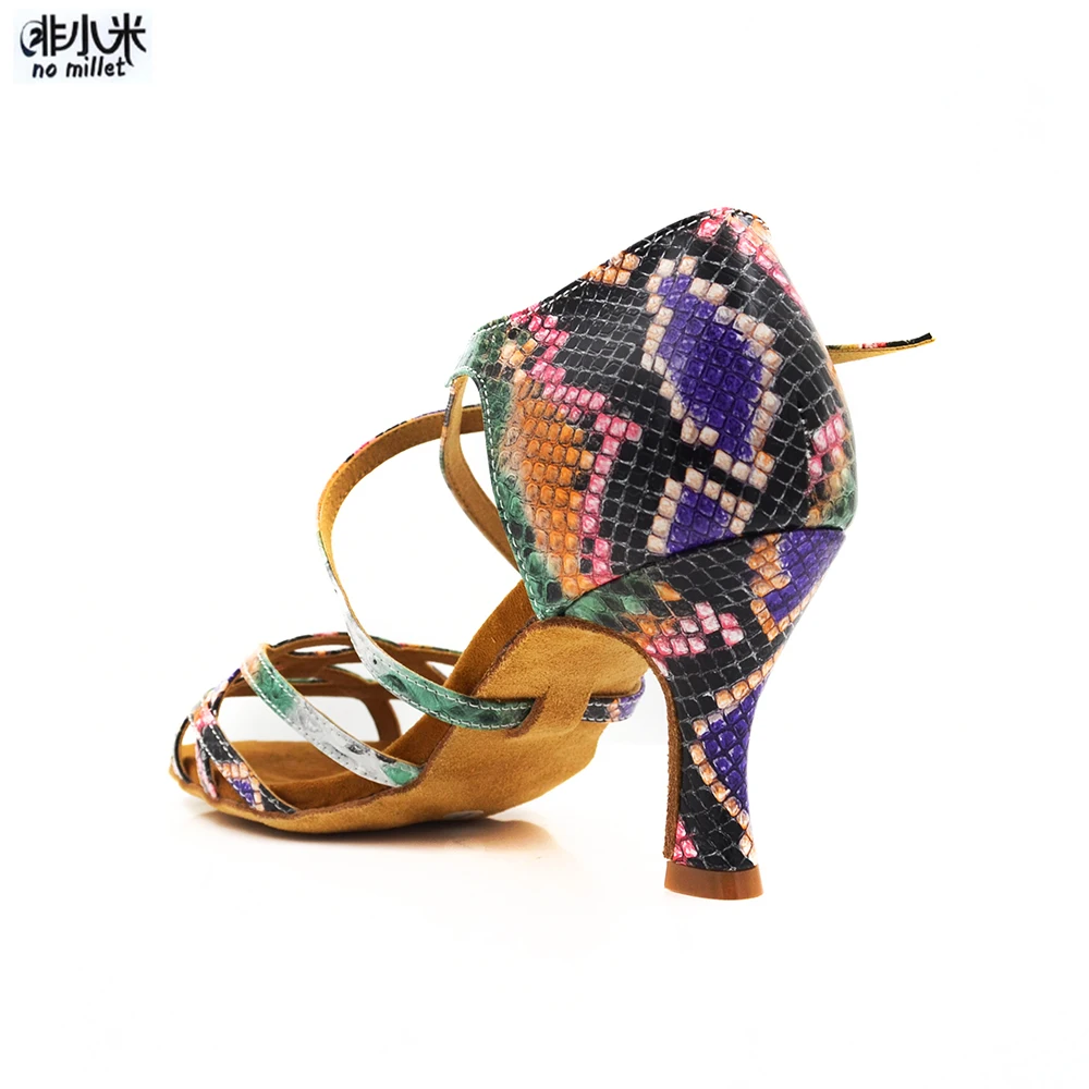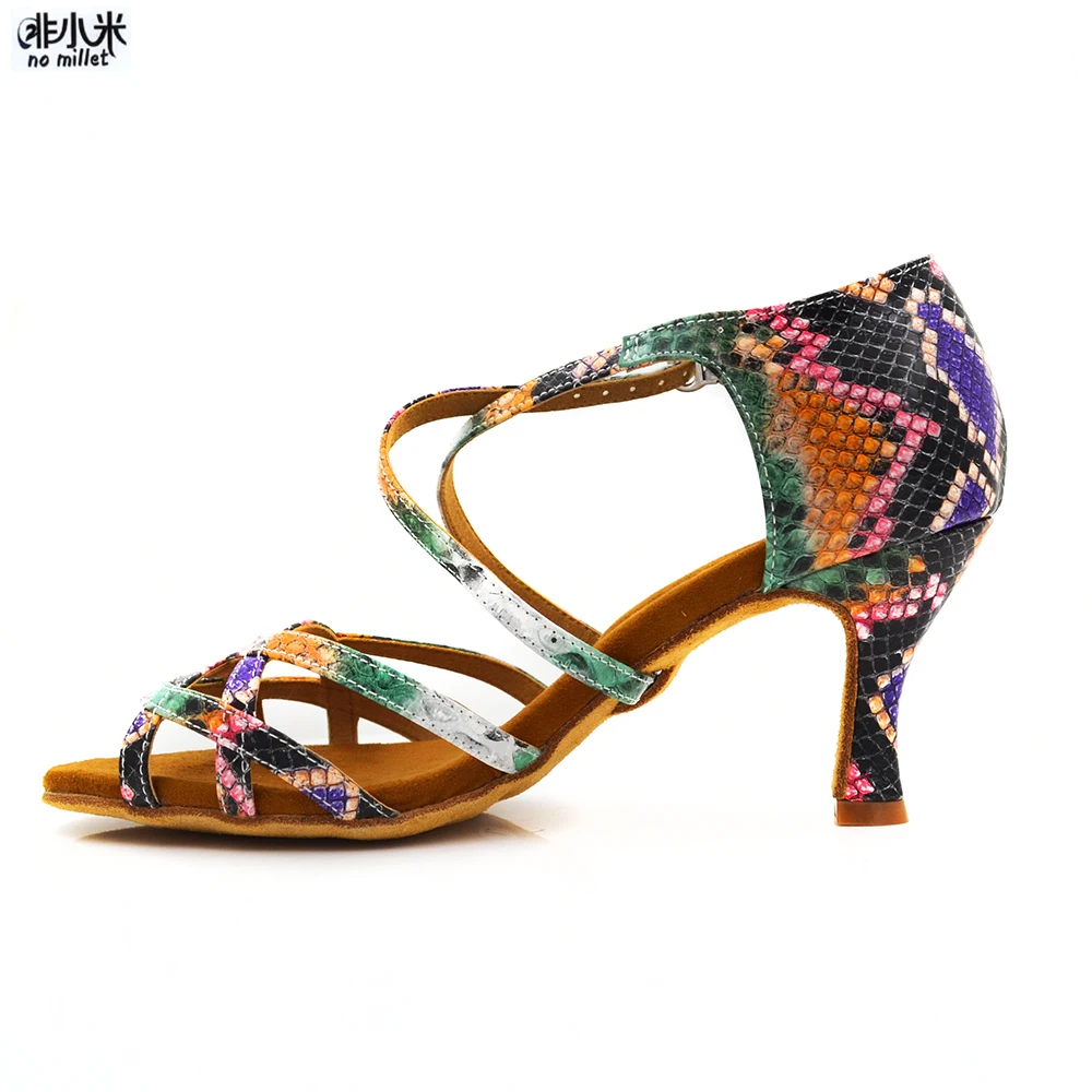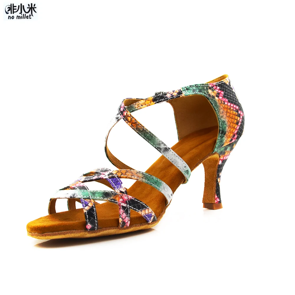Новое поступление, женская обувь, Цветные Цветочные кожаные туфли для латинских танцев, обувь на каблуке 7 см, обувь для сальсы, обувь для латинских бальных танцев для женщин