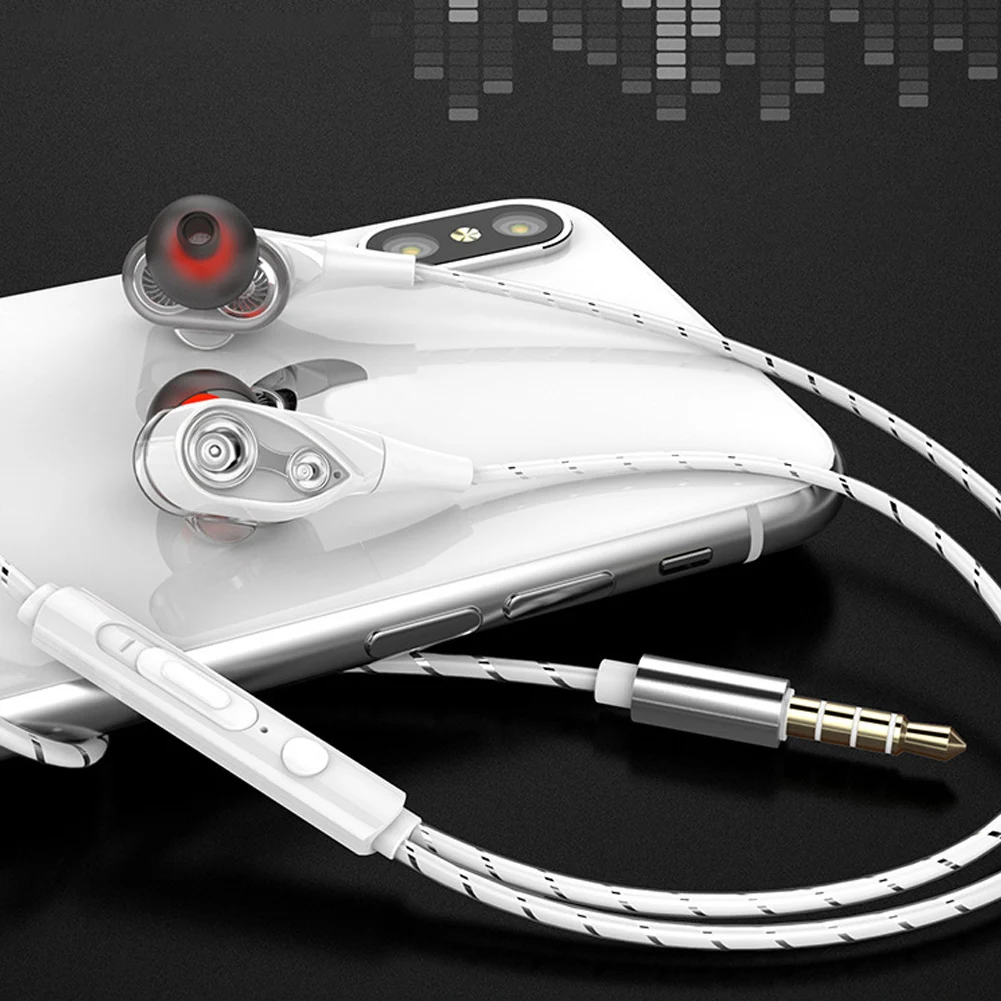 Двойной подвижная катушка 3,5 мм проводной в ухо наушники тяжелый бас стерео наушники с микрофоном