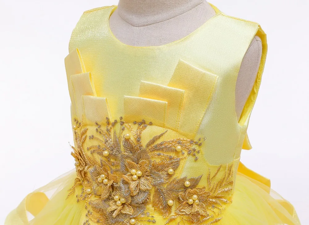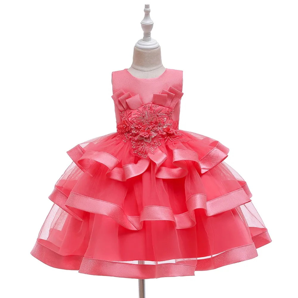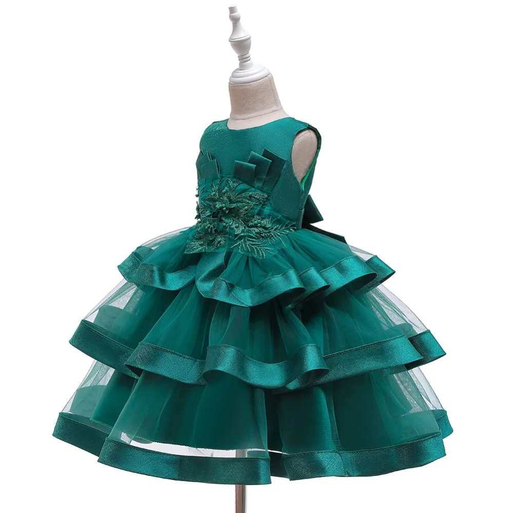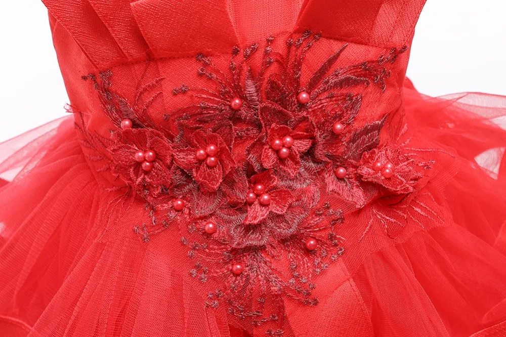 Hetiso Princess Flower Girls Wedding Dresses Children's Lace Pearl Bow Tutu Dress Baby Birthday Party Sleeveless Red Green Dress