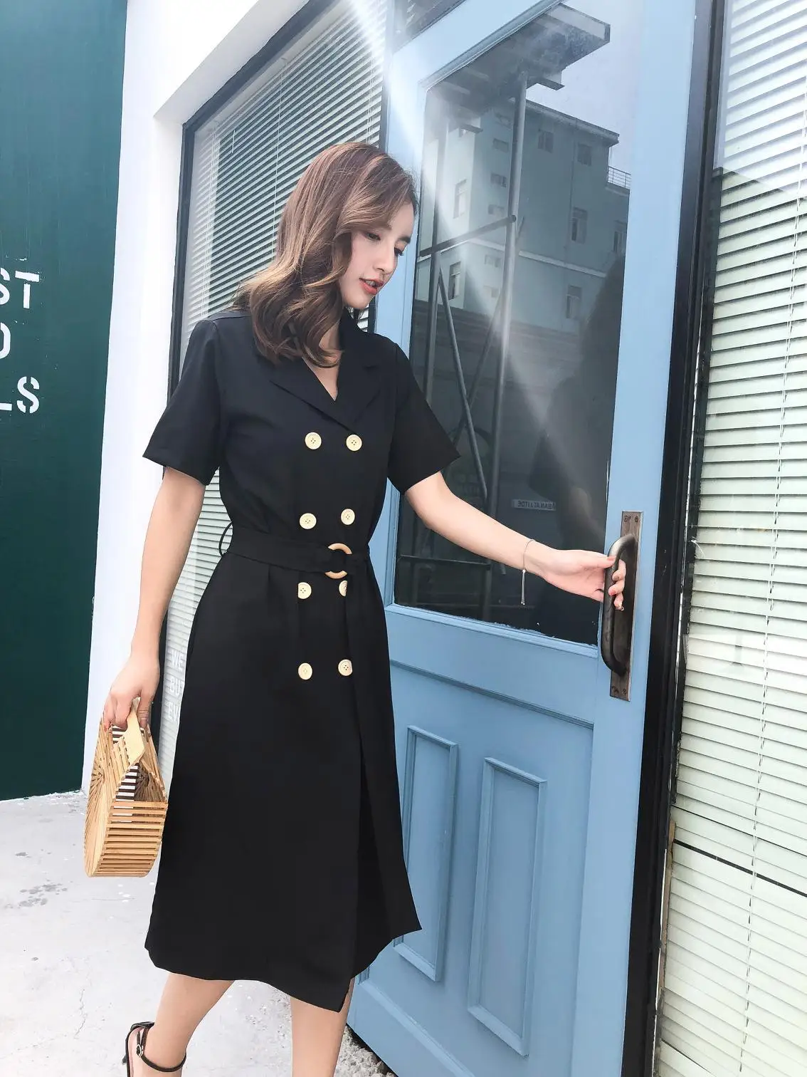 Summer Notched Long Shirt Dress 2020 Women Sashes Double Breasted Short Sleeve Dress Female Lace-up Slim Waist Vestidos AQ300