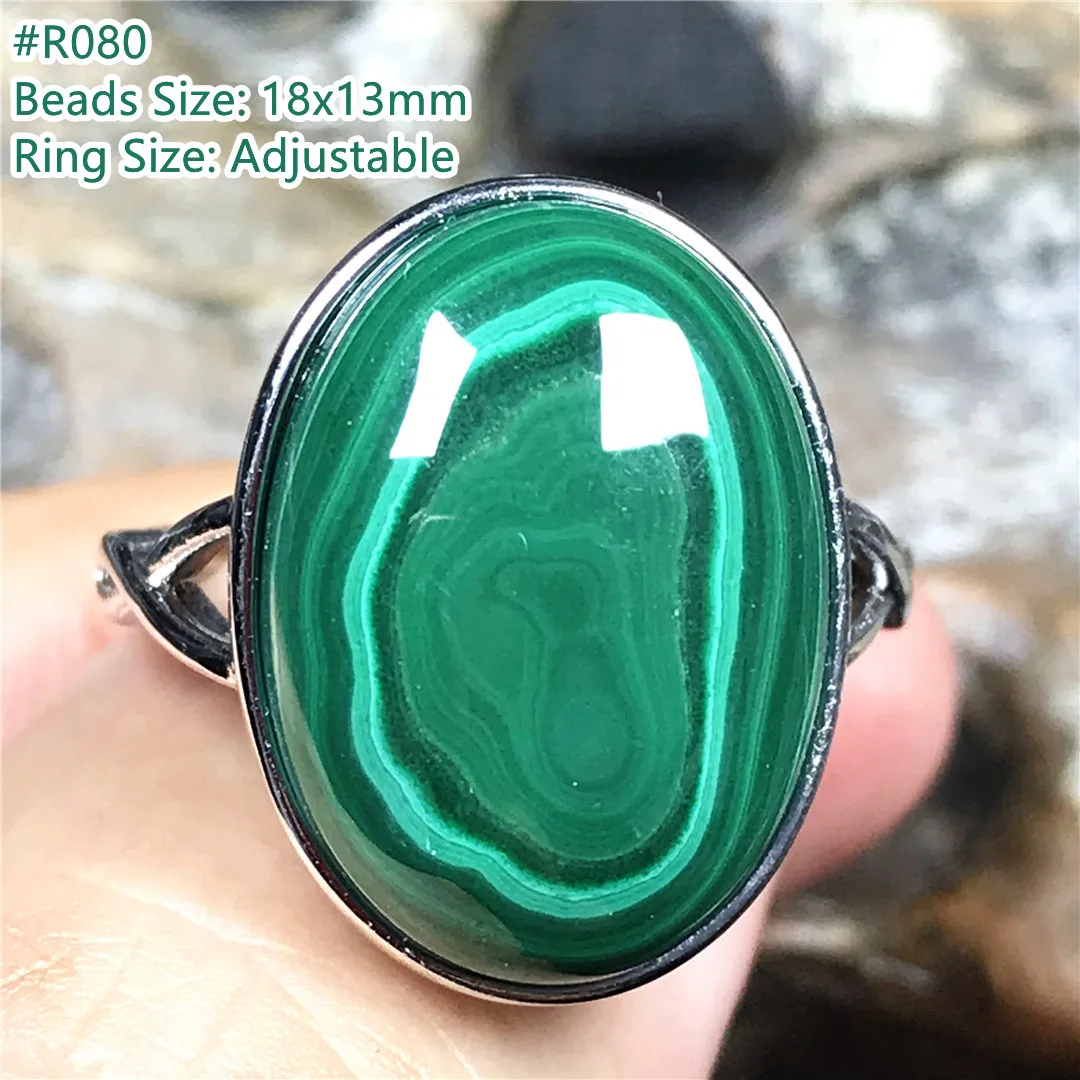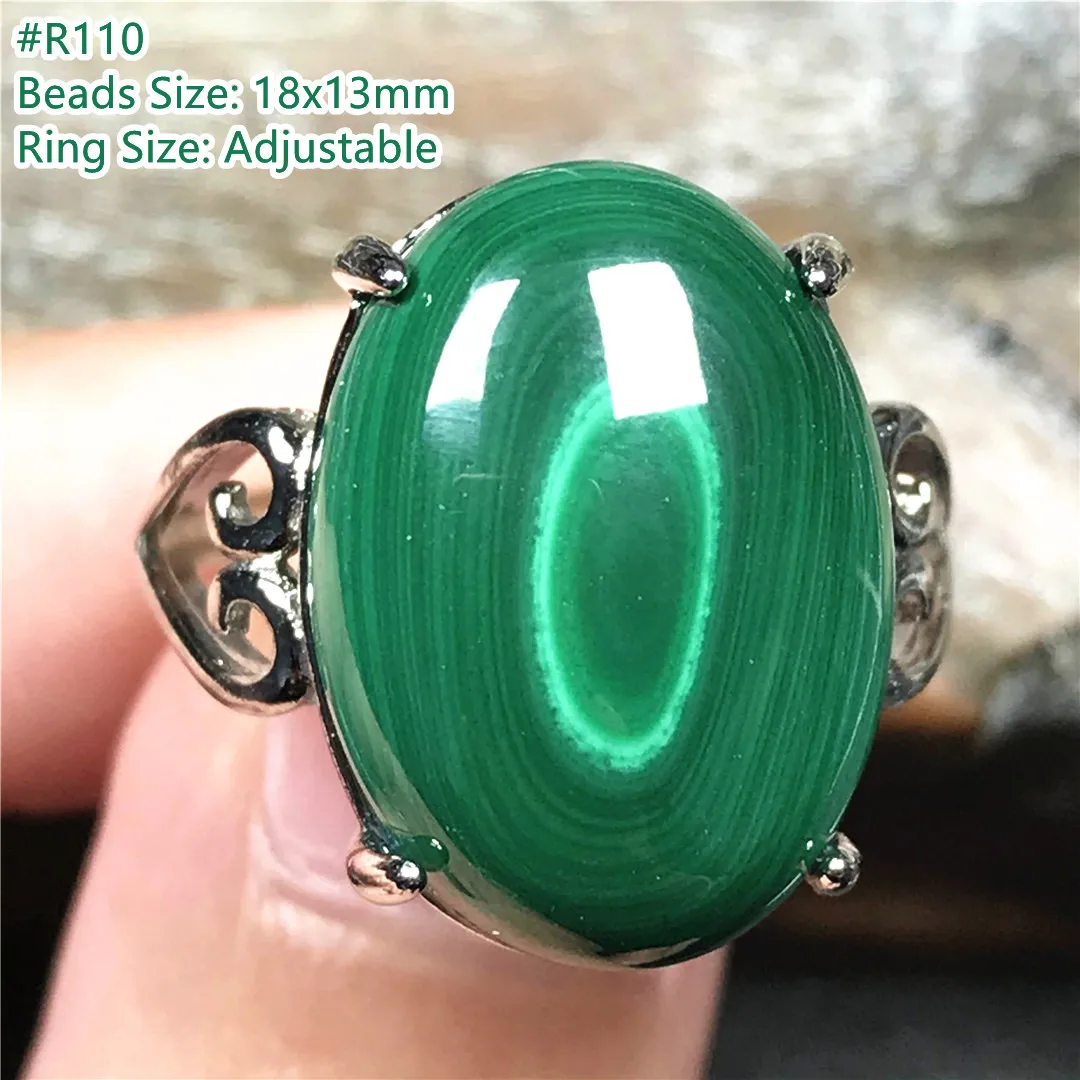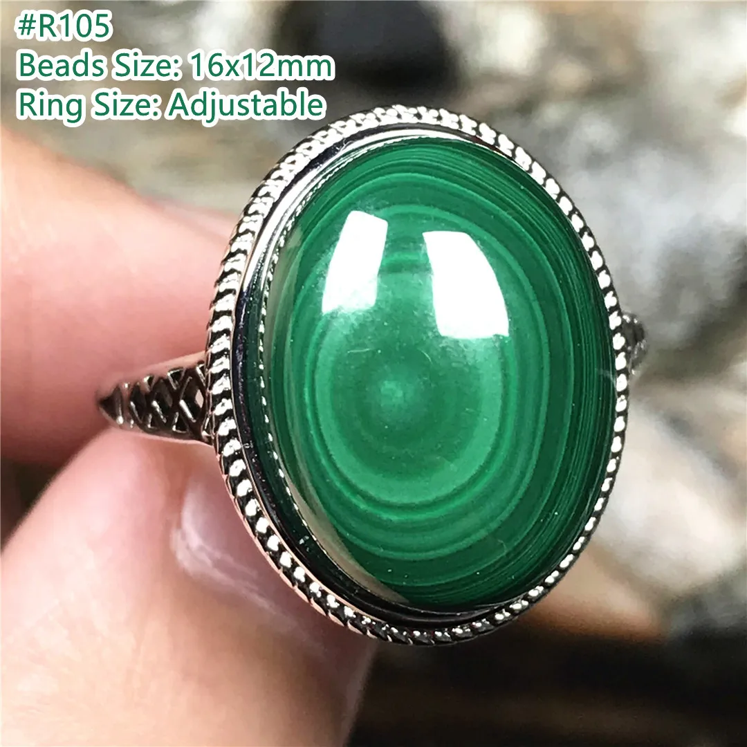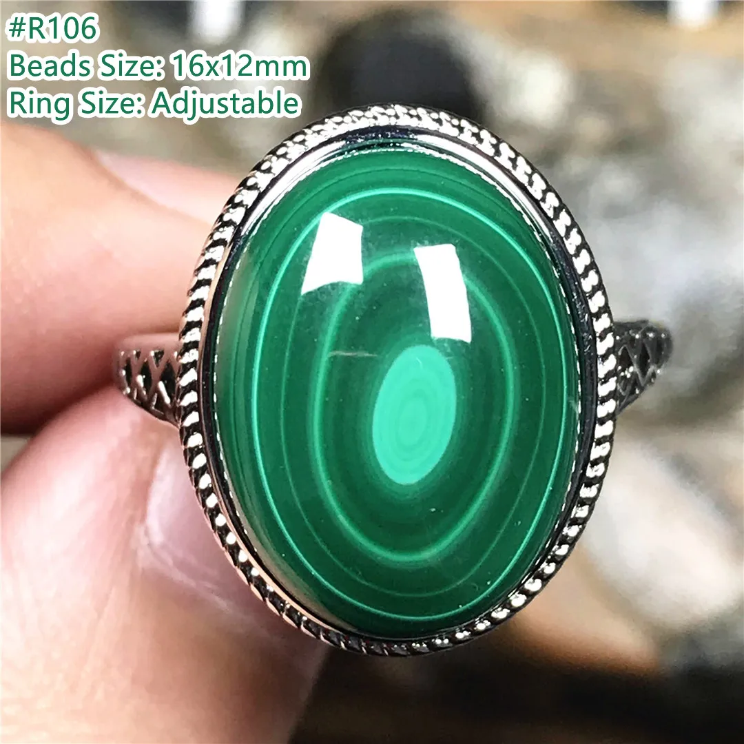 Подлинное натуральное зеленое малахитовое кольцо для женщин и мужчин, подарок, Кристальные овальные бусины, Серебряное регулируемое кольцо, ювелирные изделия AAAAA, Прямая поставка
