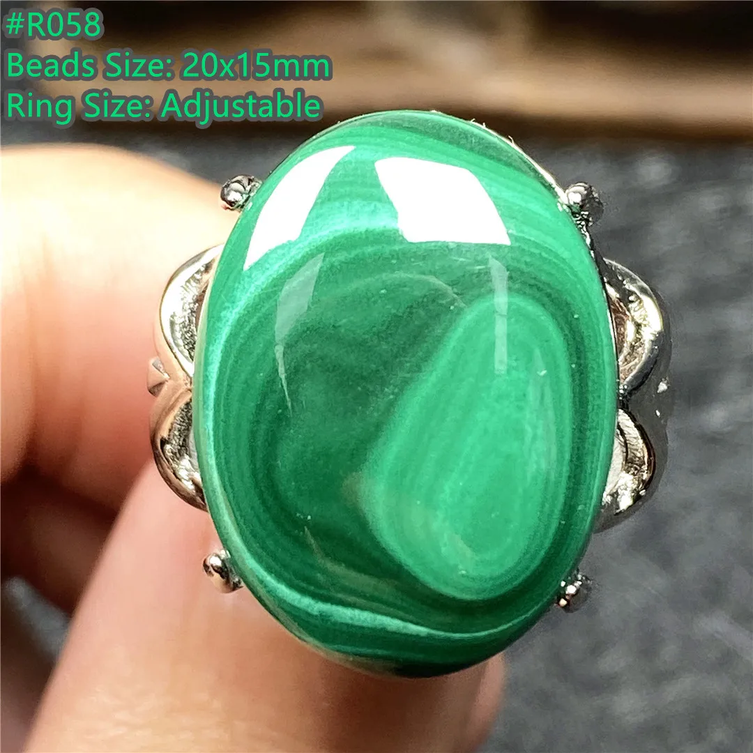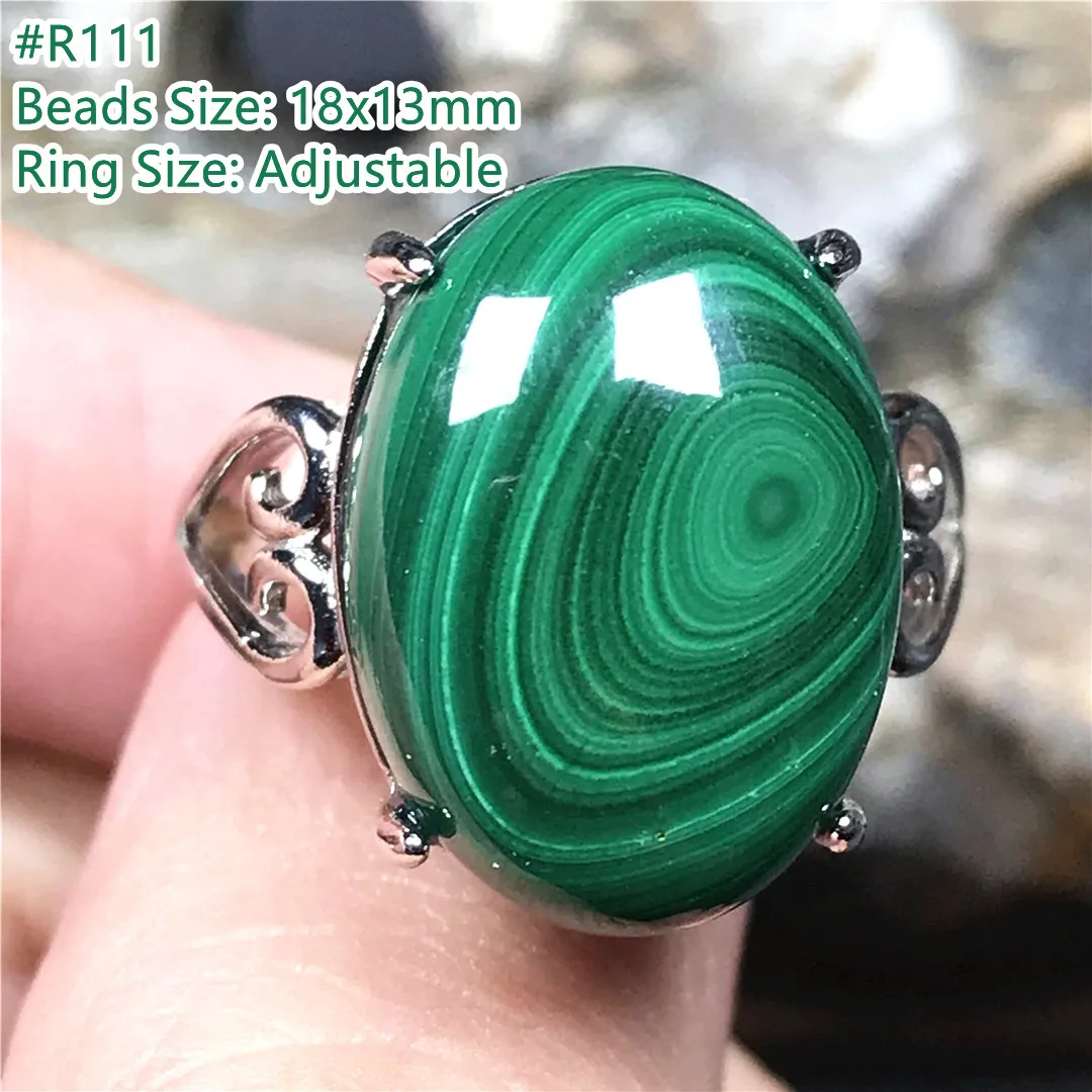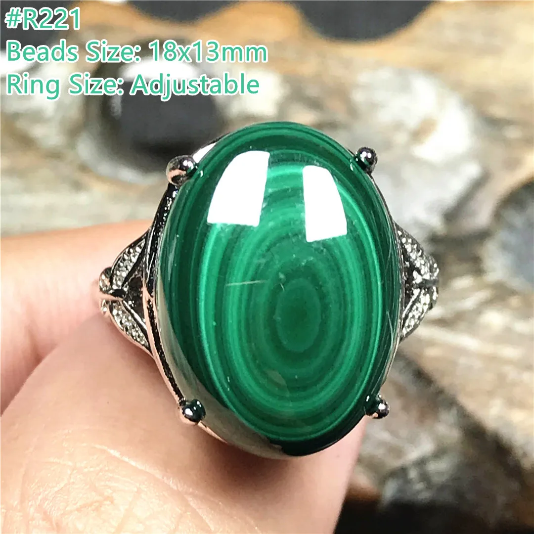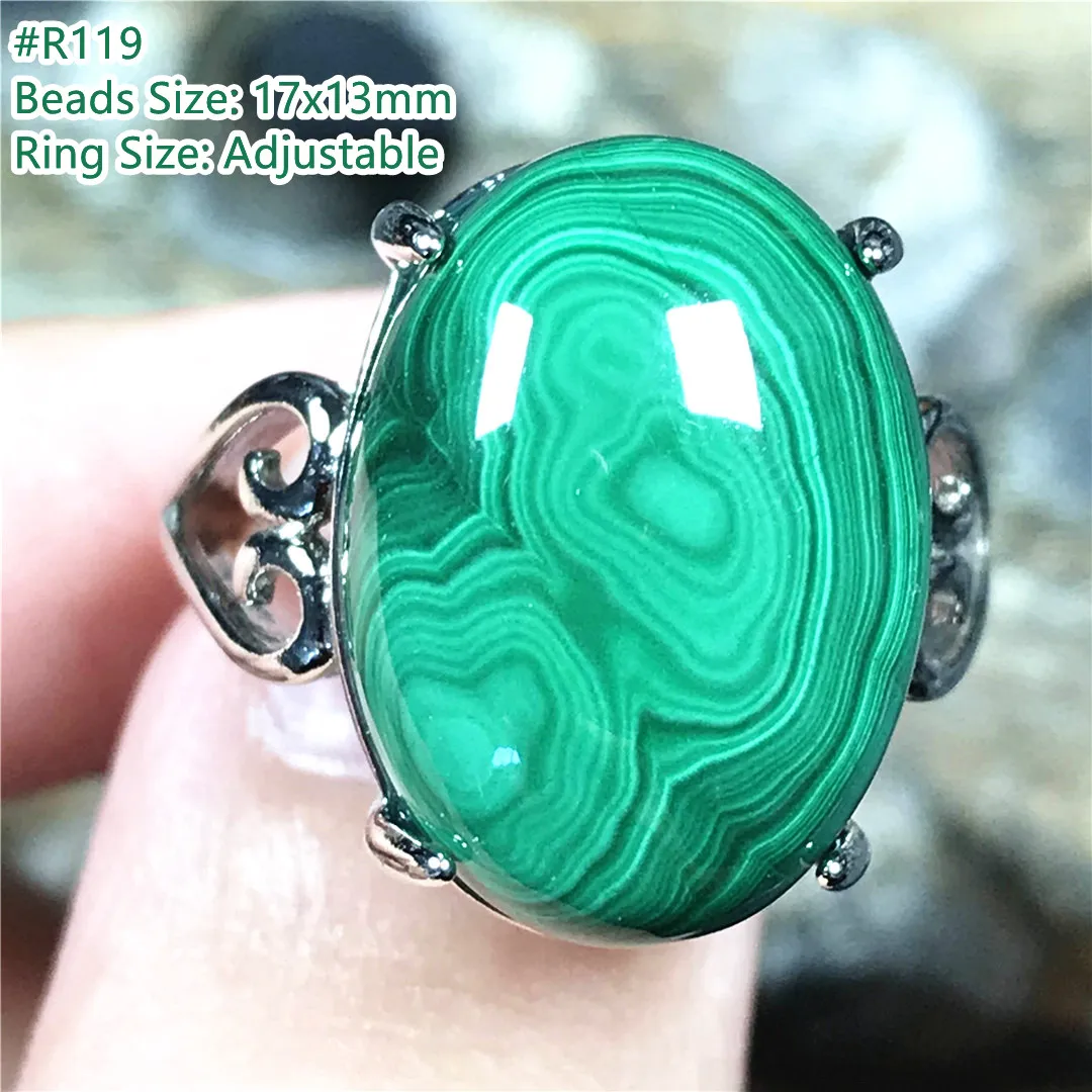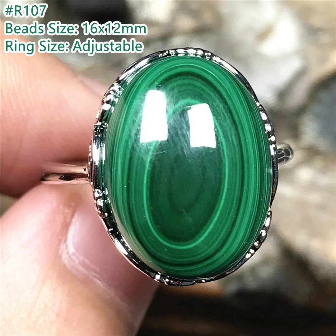 Подлинное натуральное зеленое малахитовое кольцо для женщин и мужчин, подарок, Кристальные овальные бусины, Серебряное регулируемое кольцо, ювелирные изделия AAAAA, Прямая поставка