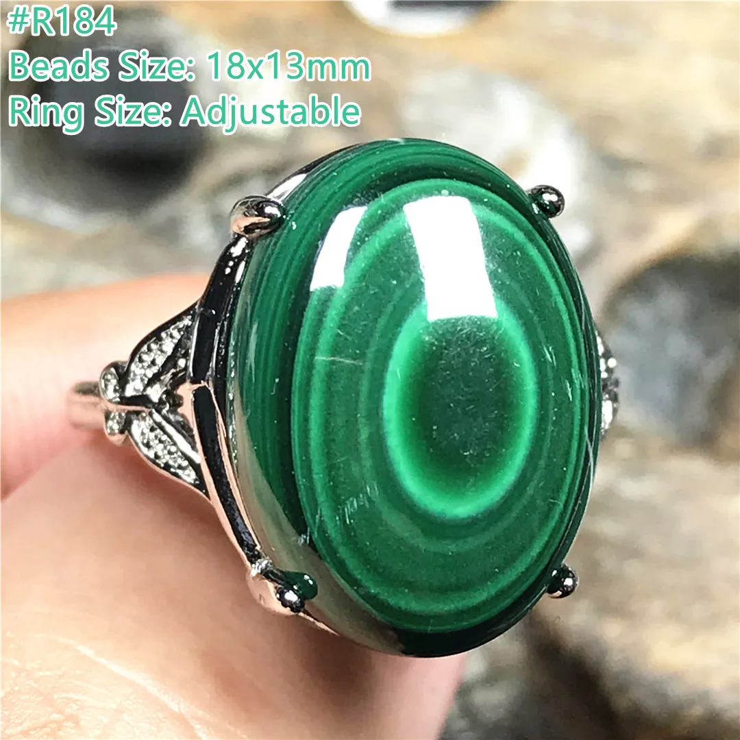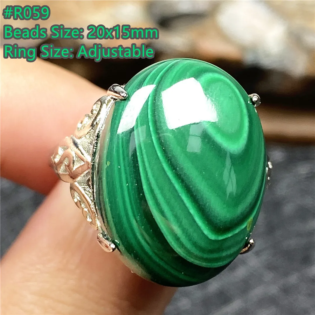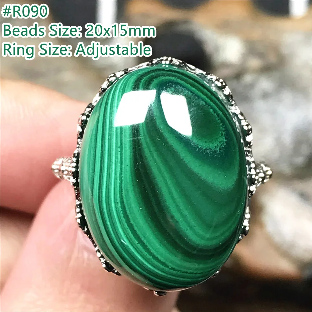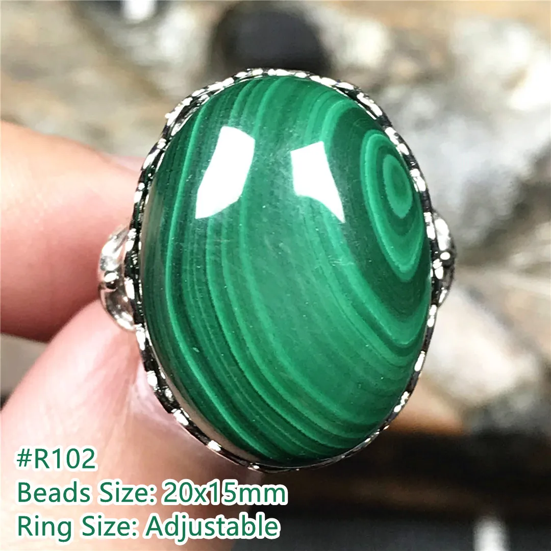 Подлинное натуральное зеленое малахитовое кольцо для женщин и мужчин, подарок, Кристальные овальные бусины, Серебряное регулируемое кольцо, ювелирные изделия AAAAA, Прямая поставка