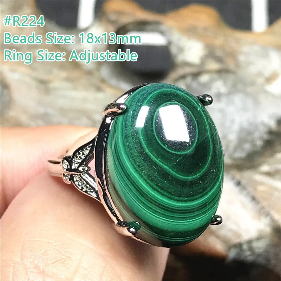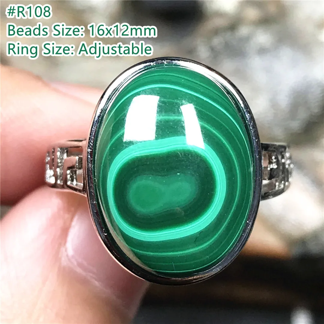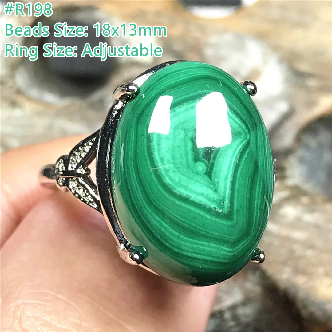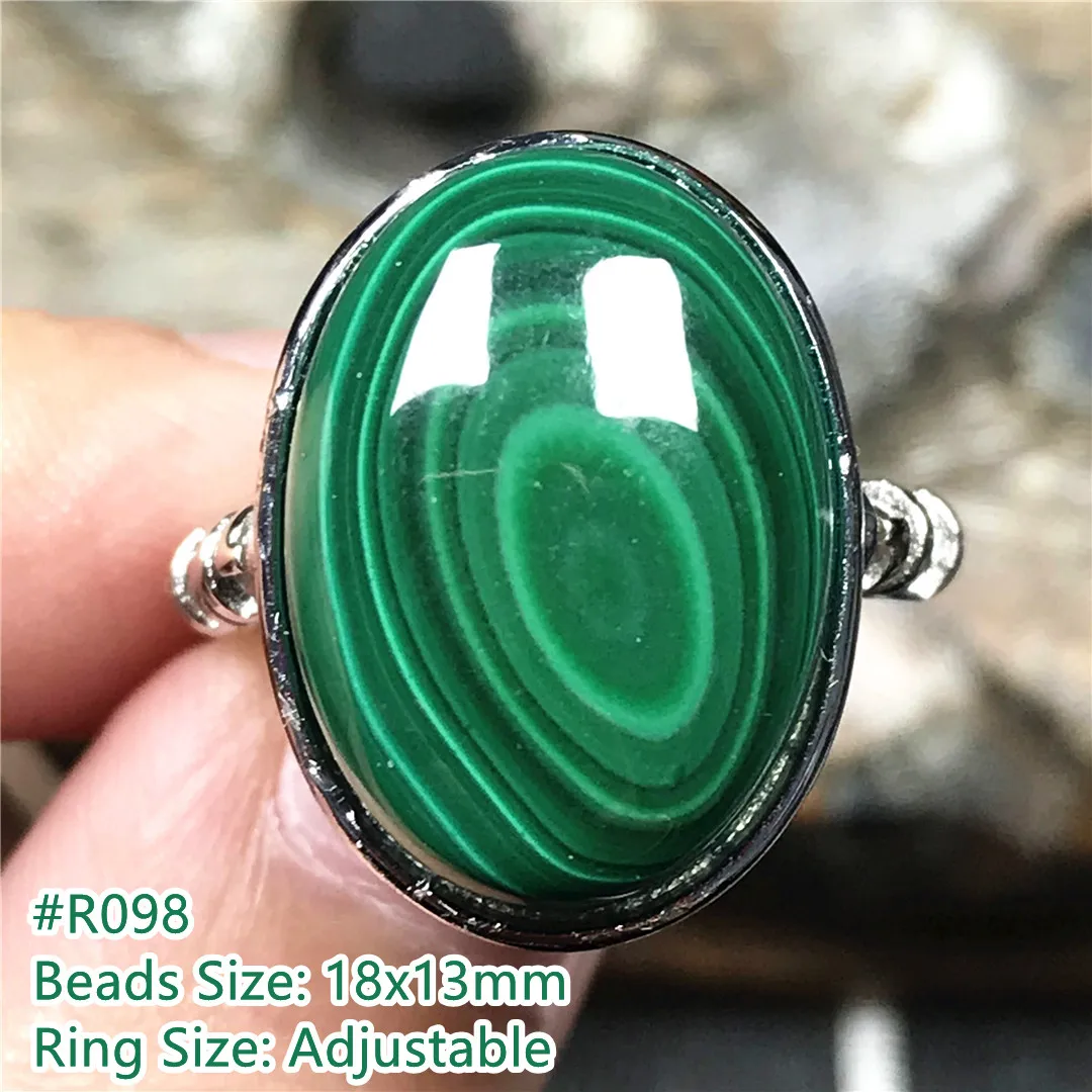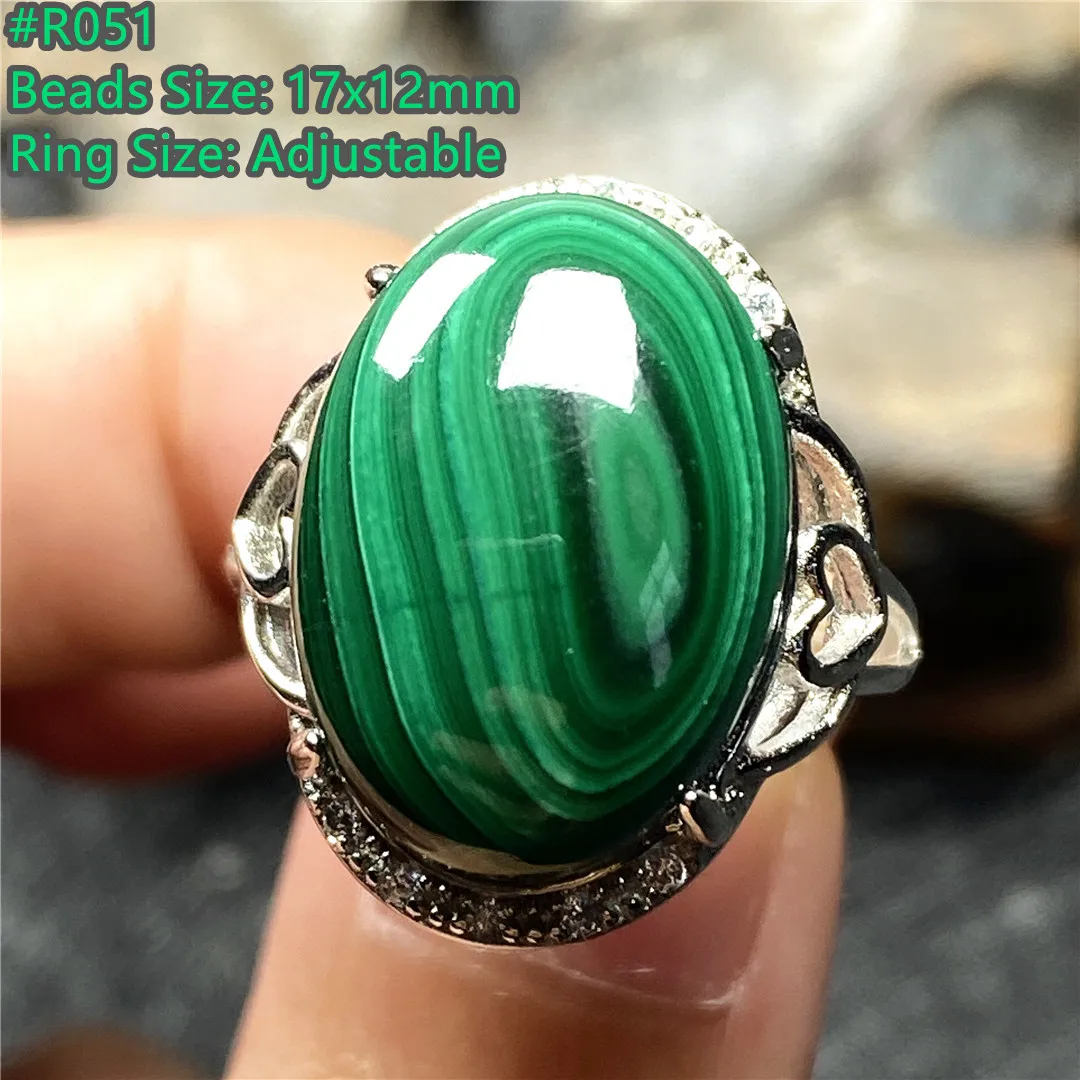 Подлинное натуральное зеленое малахитовое кольцо для женщин и мужчин, подарок, Кристальные овальные бусины, Серебряное регулируемое кольцо, ювелирные изделия AAAAA, Прямая поставка