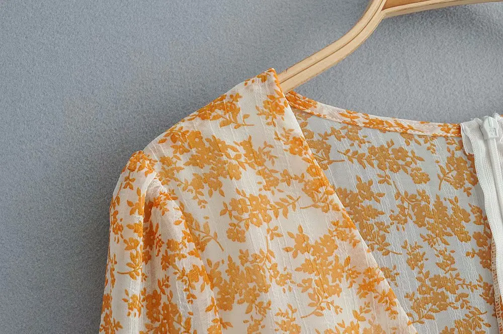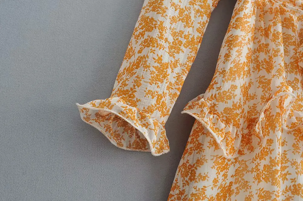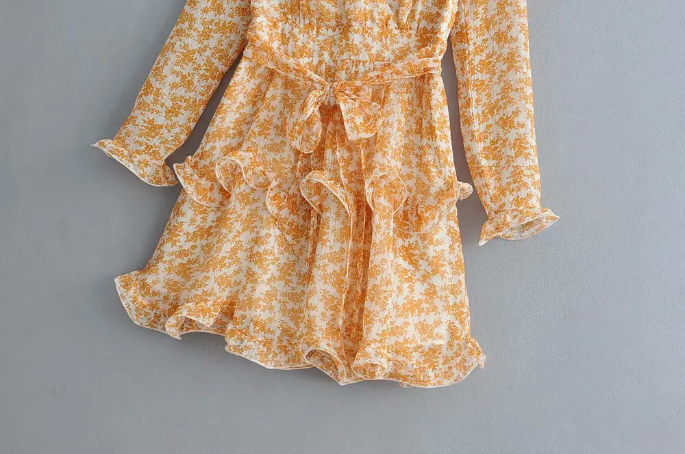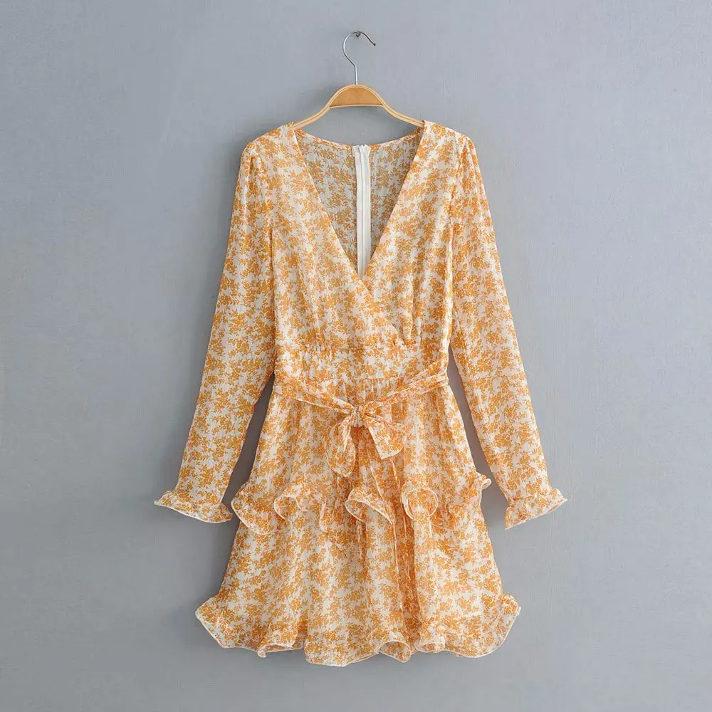 Летнее красивое шифоновое платье с принтом и шнуровкой на талии