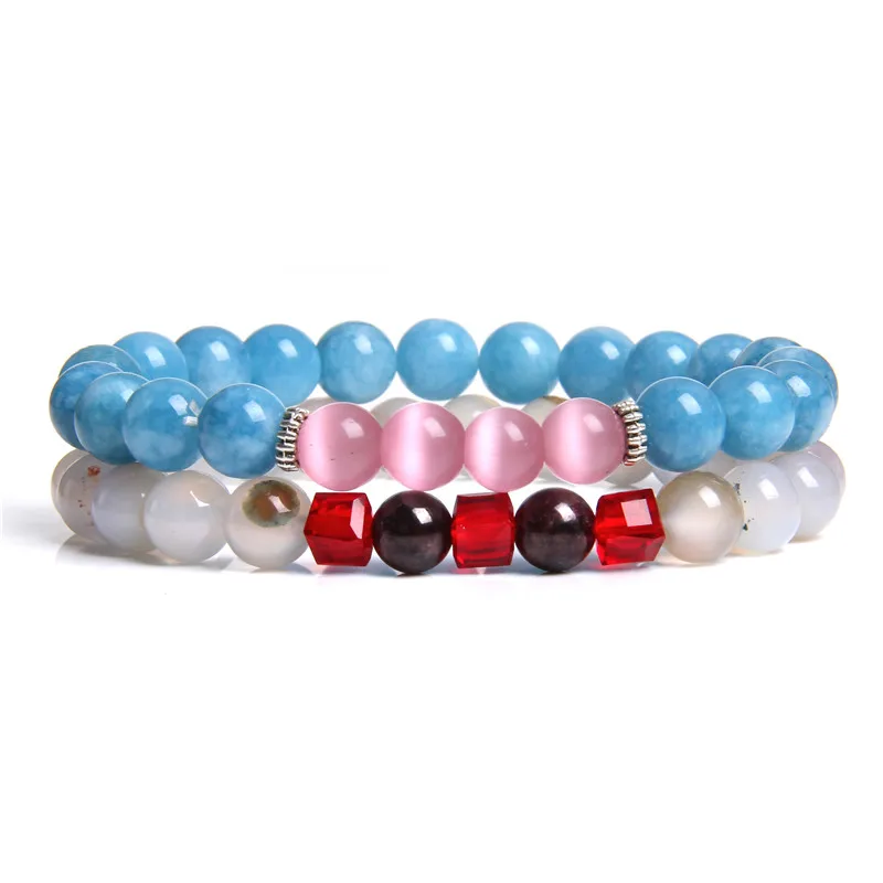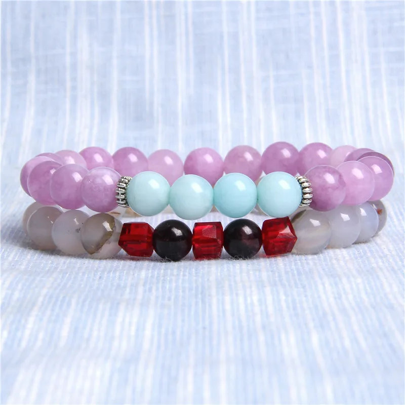 Женские браслеты полосатый Агаты нефрита опал из бисера наручные часы для мужчин и женщин, натуральный камень браслет наборы ювелирных украшений стекируемые мала браслеты ювелирные изделия