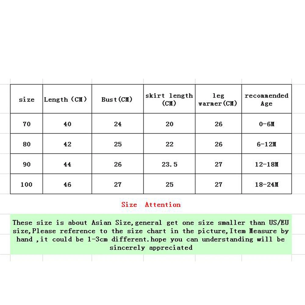 Size bust(CM) length(CM) leg warmer(CM) recommanded age