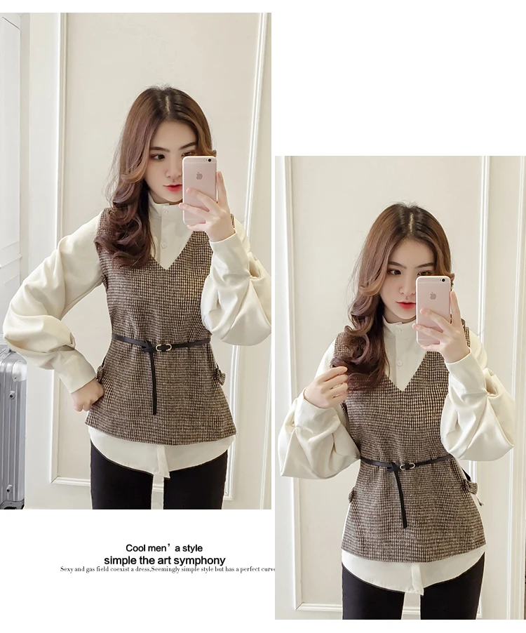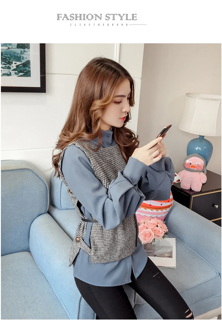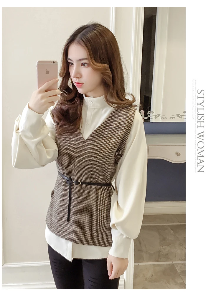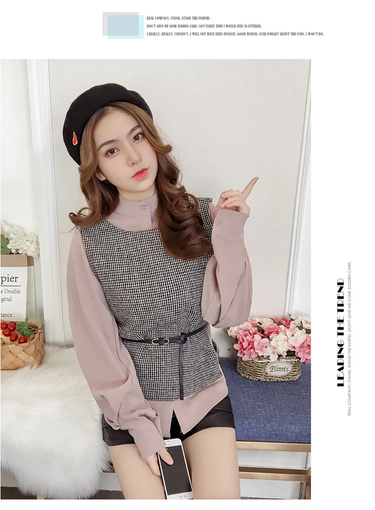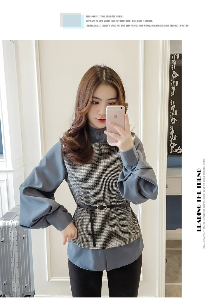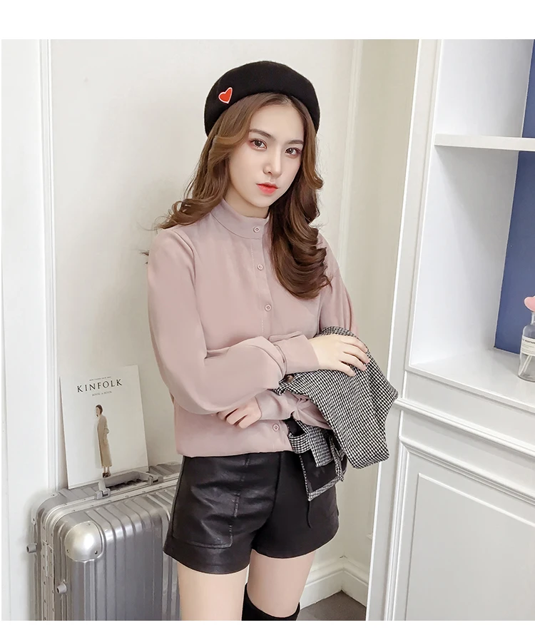 2020新款灯笼袖 POLO衫上衣 韩版 宽松 学生长袖 雪纺衬 衫衬衣