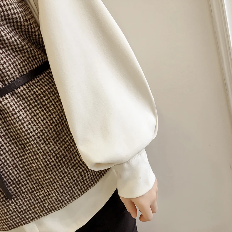 Для женщин Фонари рукав блузки 2020 женские длинные хлопковые топы Женский Винтаж свободного кроя с воротником-стойкой и буфами на рукавах белый популярный комплект с юбкой для маленьких девочек, топ DC792 <