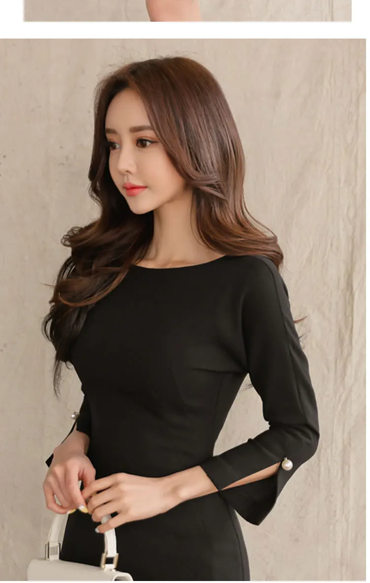 Осенне-зимнее женское платье 2020, винтажное, черное, с рукавом, официальное, для вечеринки, облегающее, для офиса, для девушек, для работы, весеннее, DC851 <