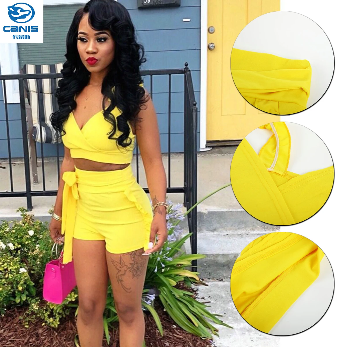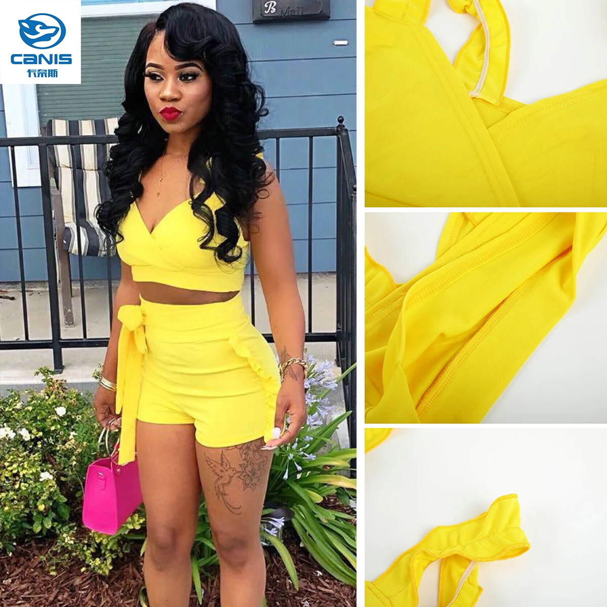 Style: Fashion Women Crop top+Shorts Material:Polyester