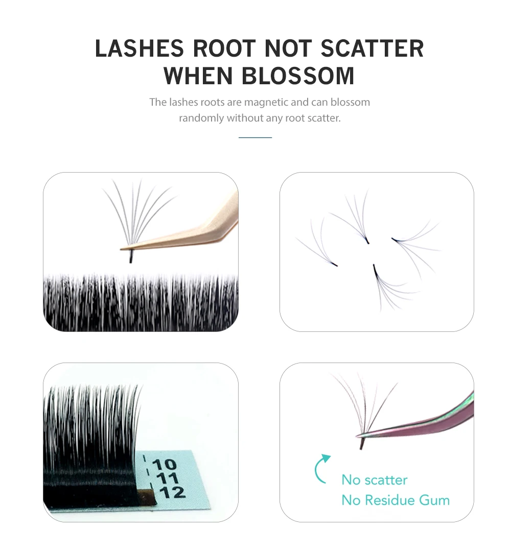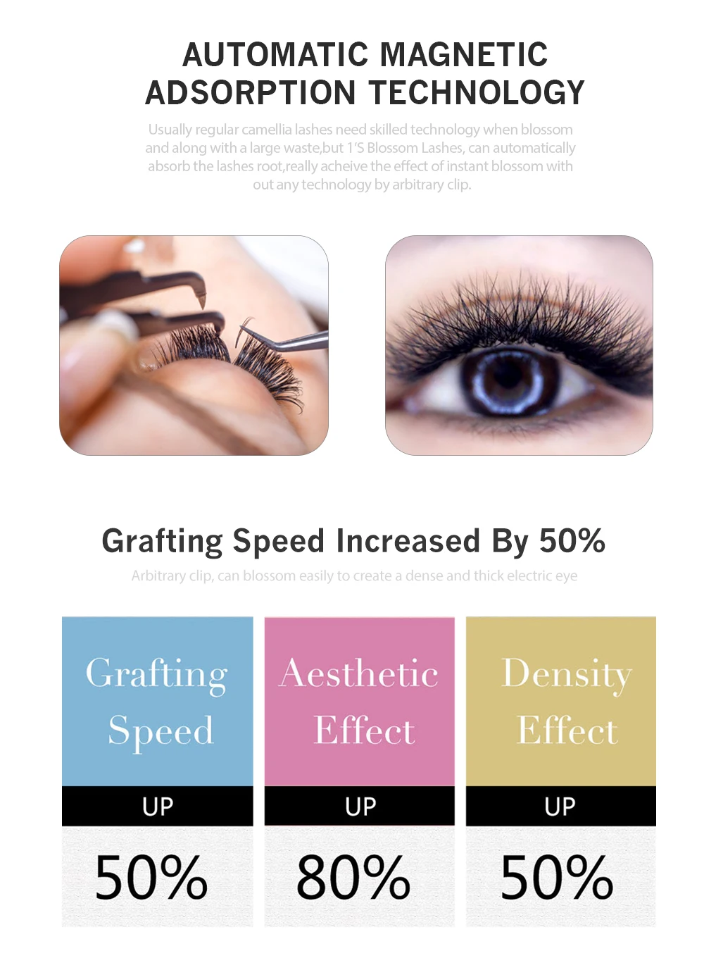 1'S Blossom Lashes, также называемые поклонниками объемных ресниц и магнитной камелии, является усовершенствованным расширением ресниц, очень легко сделать поклонников без каких-либо технологий и сделать процесс прививки более быстрым, который очень популярен среди многих косметологов.