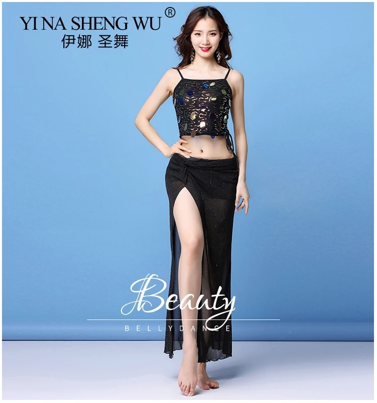 Pink Belly Dancing Suit Female New Sequins Sexy Sling Dance Practice Costumes Black Oriental Dance Belly Dance 2Pcs Practice Set
