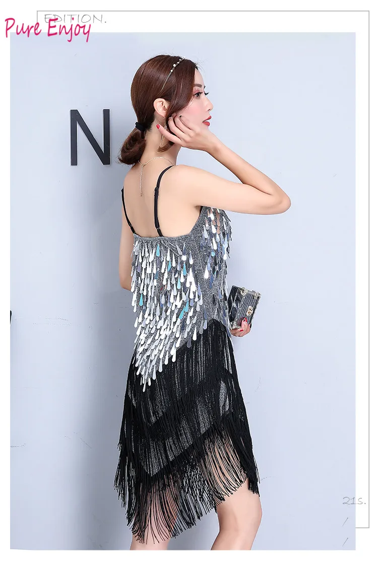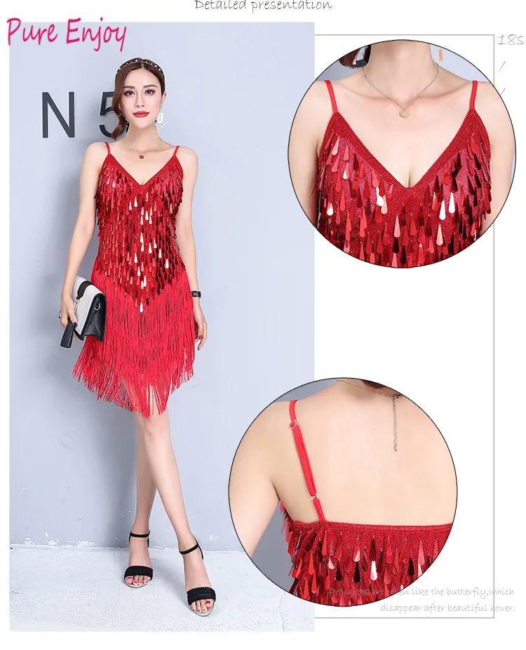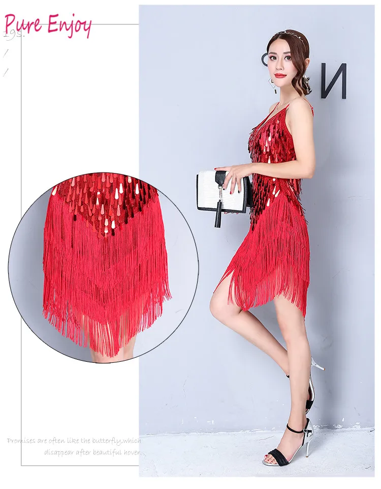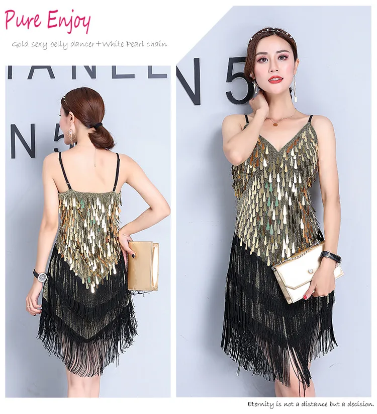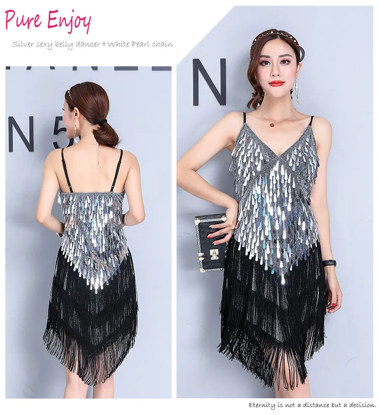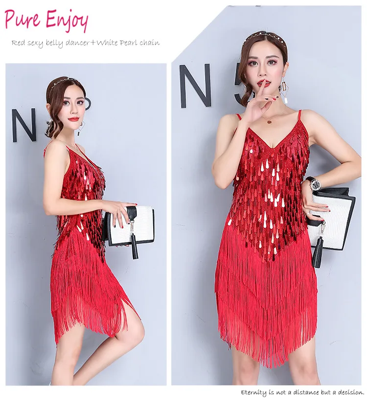 Платье для танца живота, бальных танцев, танго, платья для сальсы, латинских танцев, женское черное платье для соревнований, костюм с бахромой и красными блестками