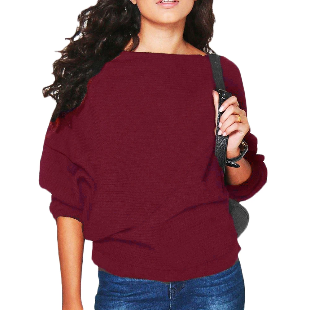 Женский Осенний свободный однотонный пуловер с длинным рукавом, трикотажный свитер, Топ