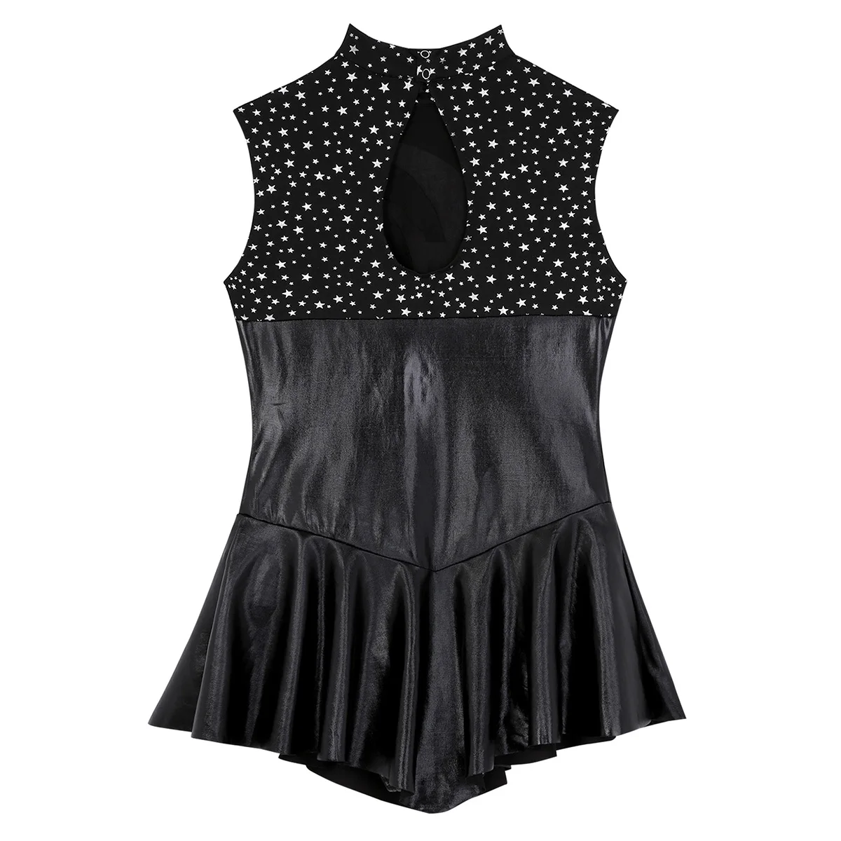 Women adults shiny metallic skating ballet dance gymnastics leotard dress, pull on closure.