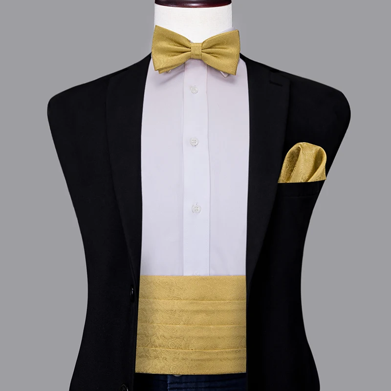 YF-2017 Hi-Tie Роскошный шелковый галстук-бабочка Hanky запонки набор золотой пояс для мужчин эластичный пояс для смокинга пояс