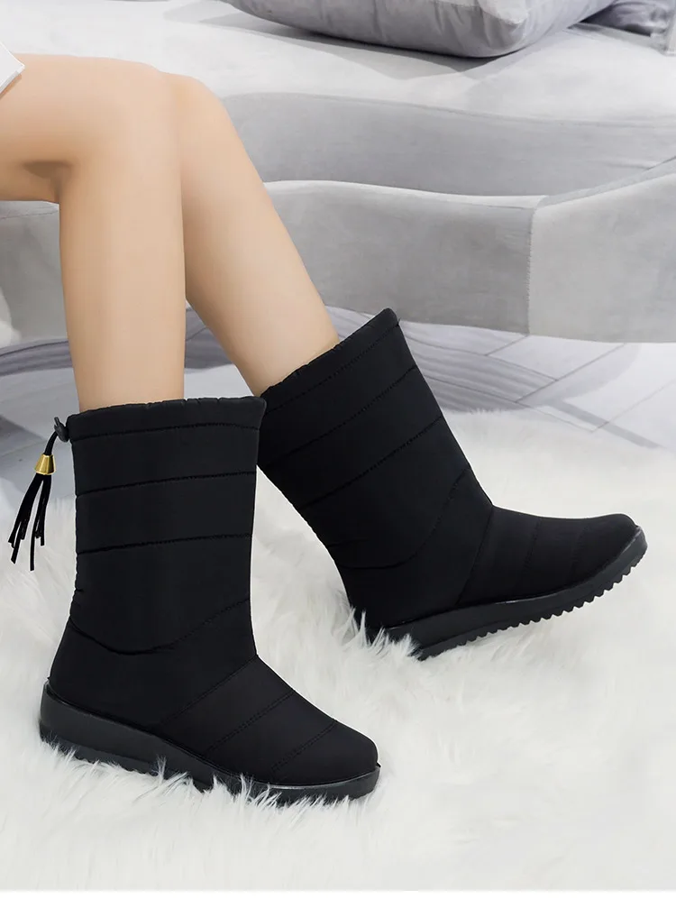 Женские сапоги зимние сапоги до середины икры на низком каблуке зимние сапоги женские зимние сапоги водонепроницаемые теплые женские сапоги на танкетке