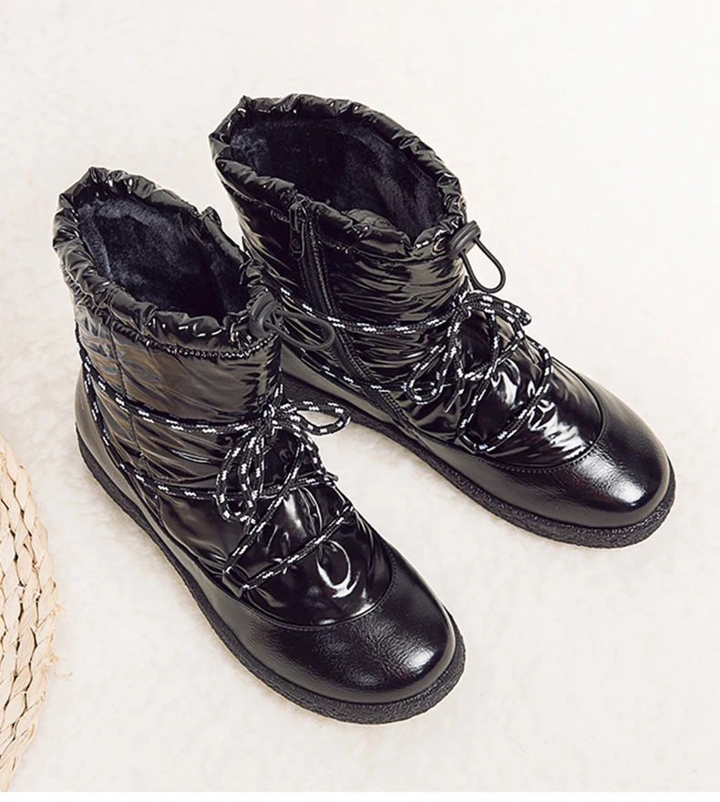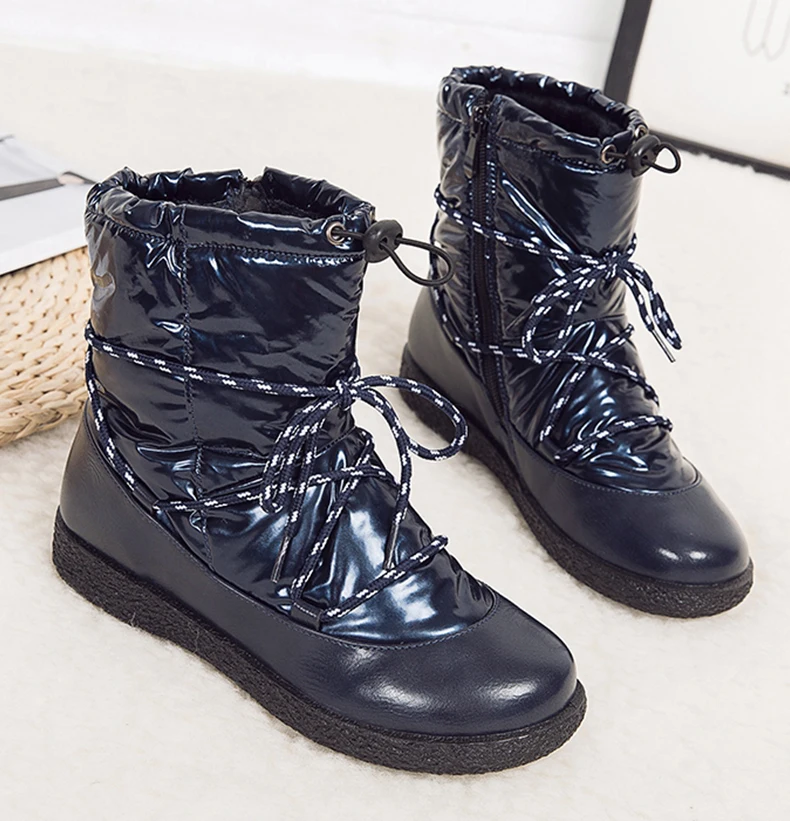 Женские ботинки Водонепроницаемая зимняя обувь женские зимние ботинки на низком каблуке женские шикарные ботинки средней длины до голени Mujer размера плюс зимние ботинки
