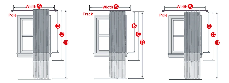 2. Длина штор =B/C/D(До высоты вашего окна).