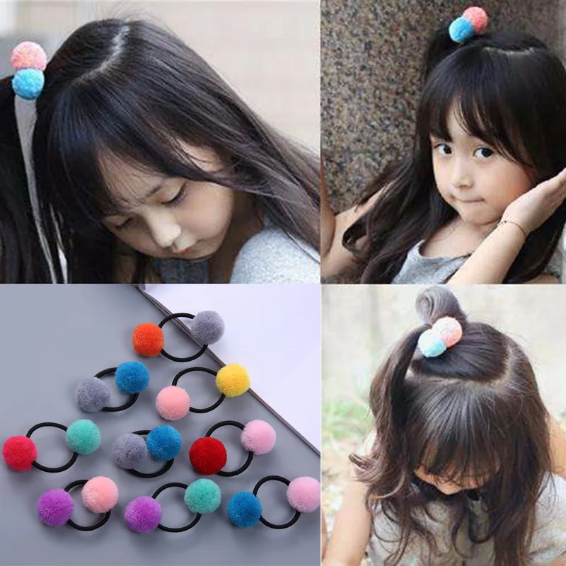 1 шт., новинка, милые заколки для волос с помпоном для маленьких девочек, эластичная резинка для волос с двумя помпонами, аксессуары для волос для девочек