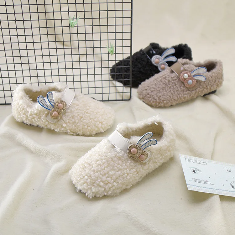 Зимняя детская обувь принцессы; обувь на плоской подошве с жемчужинами для маленьких девочек; детская теплая Брендовая обувь; черные Лоферы без застежки для малышей; модные мокасины; 2019