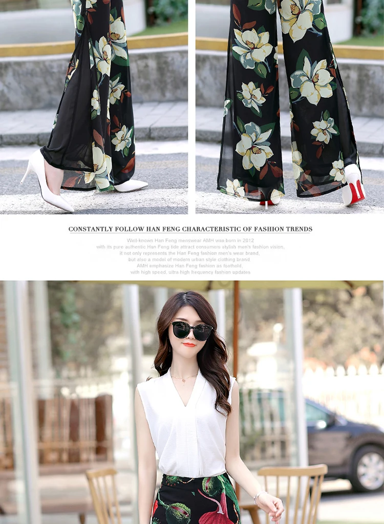 Новинка 2020 года; летние брюки с цветочным принтом и разрезом сбоку; тонкие шифоновые свободные брюки с высокой талией для отдыха; пляжные брюки; Размеры S до 3XL; DV213