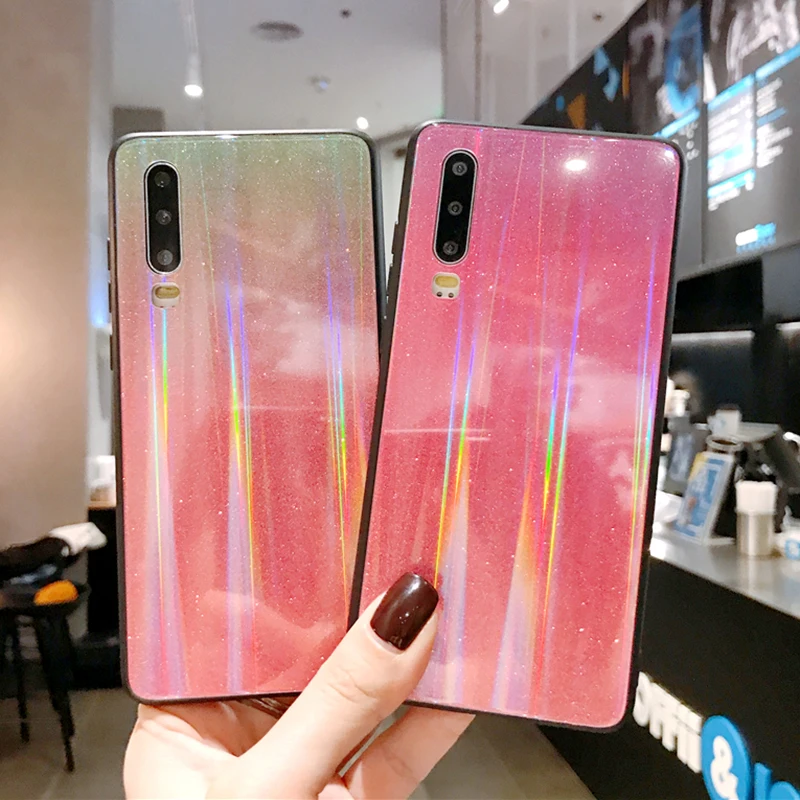 Чехол для Huawei Nova 5 5i Pro 4 3 3i, блестящий чехол Aurora с закаленным стеклом, чехол для Huawei Y9 Y7 2019 Nova 3 3i 4 5 5i Pro, чехол