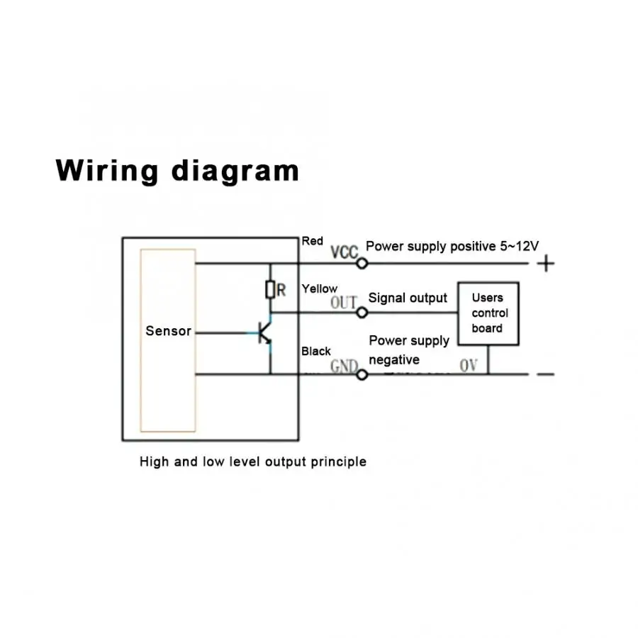 Высокая и низкая выходная мощность сигнала: Положительный выход (в зону обнаружения выход высокий уровень VCC, оставляя выход датчика низкий уровень 0V)