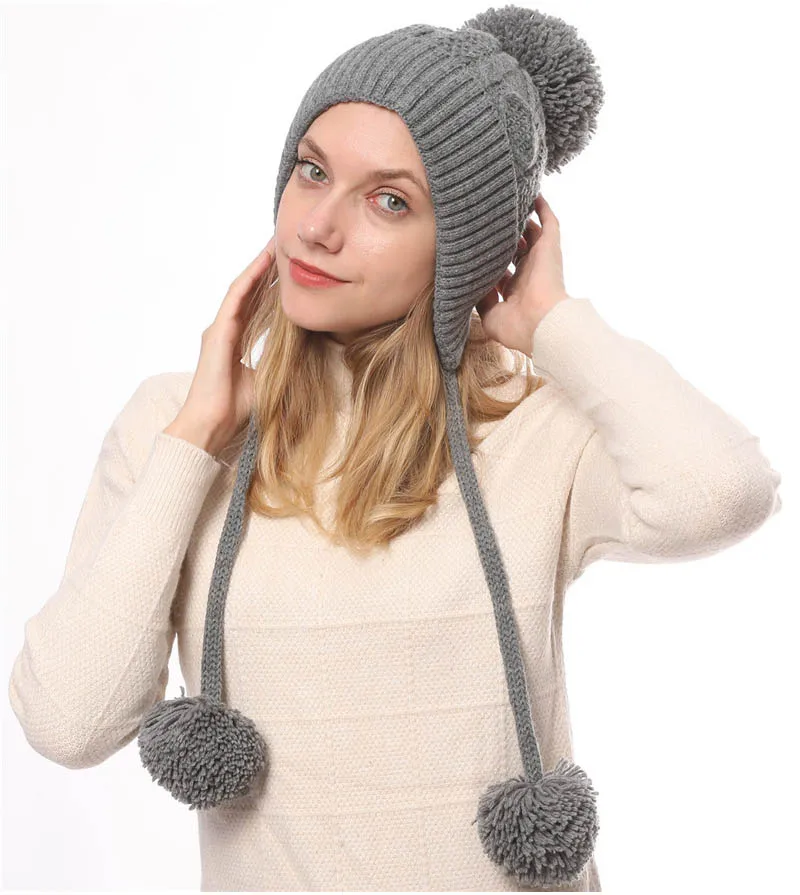 Вязаная шапка Loverboy с кошачьими ушками двухслойная теплая шерстяная свиньи милая