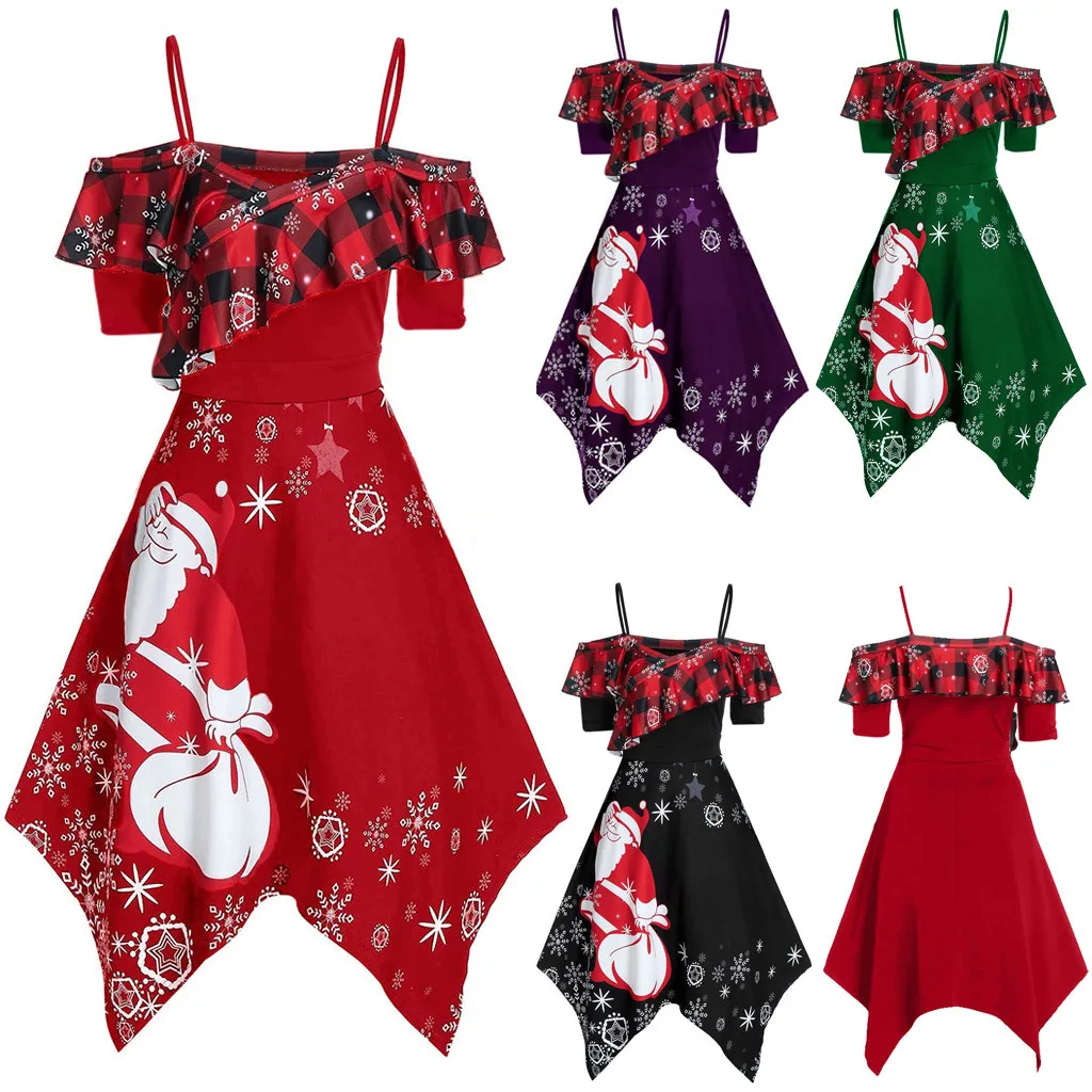 1. Особенности: большие размеры, с Рождеством, принтом Санты и снежинок, камисоль, рукав, платье, стильный и модный дизайн, Осеннее Повседневное платье